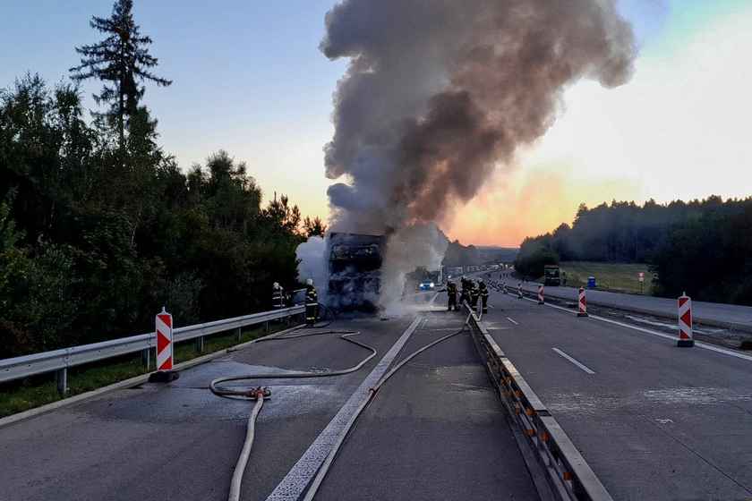 Dálnice je po dobu zásahu uzavřena. Situaci navíc komplikují probíhající práce na vozovce, kvůli nim se hasiči nemohli k místu jednoduše dostat. Aby se k hořícímu kamionu vůbec dostali, museli rozebrat svodidla.