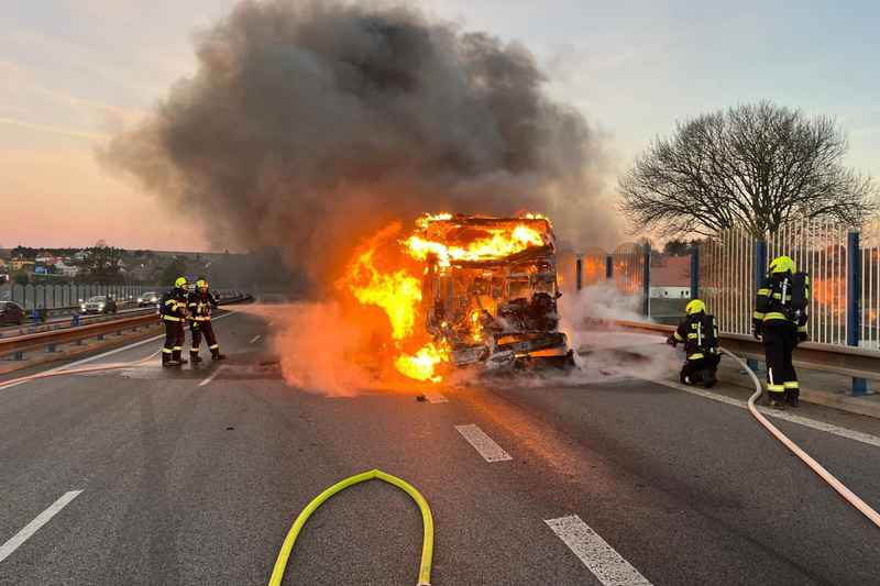 AKTUÁLNĚ: Požár autobusu zastavil dopravu na silnici I. třídy