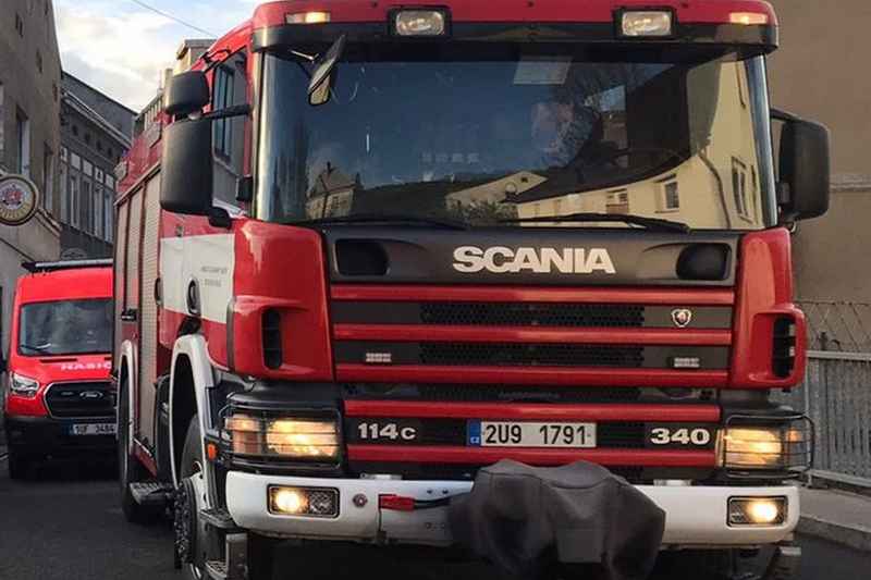 Požár bytu v Bečově u Mostu: v noci evakuace 20 lidí, dva zachránili hasiči