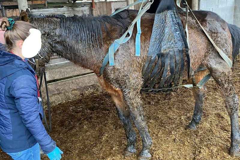 Hasiči v Žumberku pomohli koni, který upadl a nedokázal se postavit
