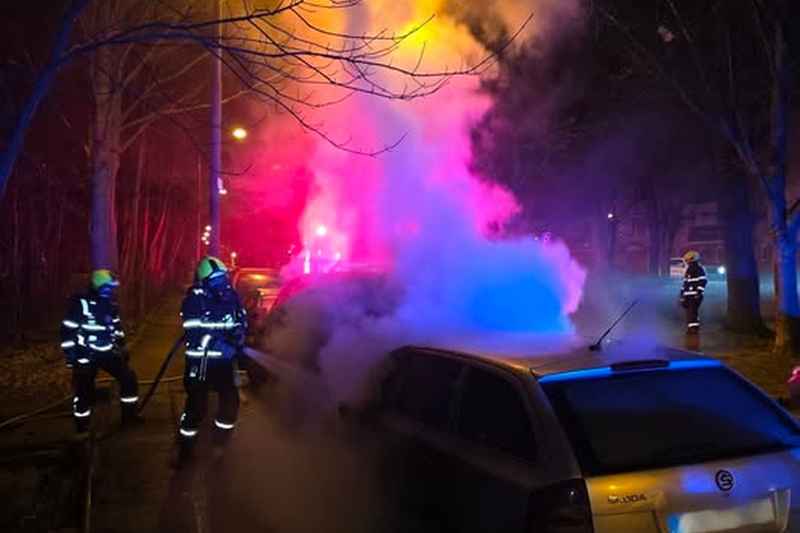 Profesionální hasiči zlikvidovali požár dvou vozidel za 36 minut.