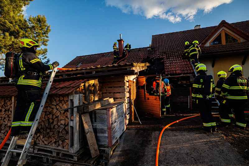 Plameny zasáhly garáž a přístavek, hasiči uchránili obytnou část domu