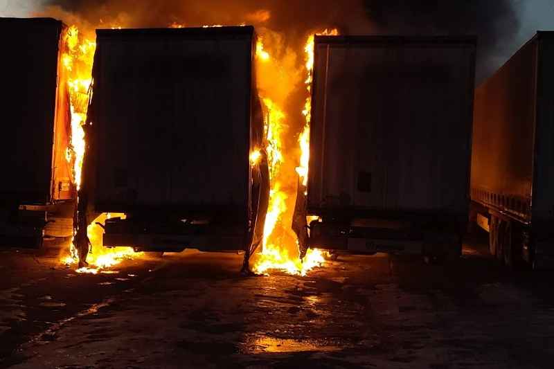 Požár nákladních souprav zaměstnal deset jednotek hasičů