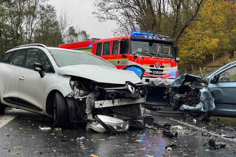 Čelní střet osobních vozů, na místě přistával vrtulník LZS