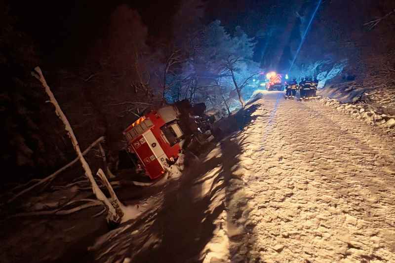 Zásah v náročných zimních podmínkách skončil nehodou hasičské techniky