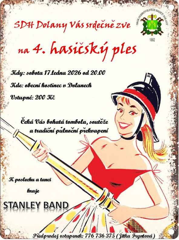 4. hasičský ples Dolany u Pardubic Kdy: 17. 1. 2026 20:00 Kraj: Pardubický Typ akce: kulturní Zpět na kalendář Zobrazit mapu