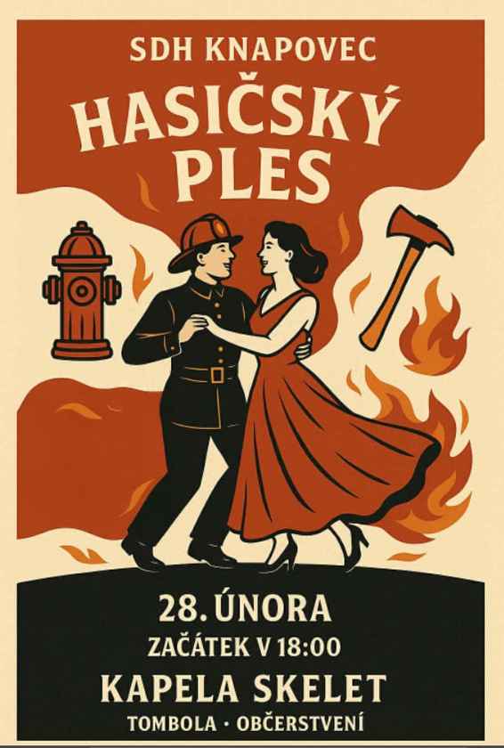 Hasičský ples SDH Knapovec 2026 Kdy: 28. 2. 2026 18:00 Kde: Společenský sál Knapovec Kraj: Královehradecký Typ akce: kulturní Zpět na kalendář Zobrazit mapu