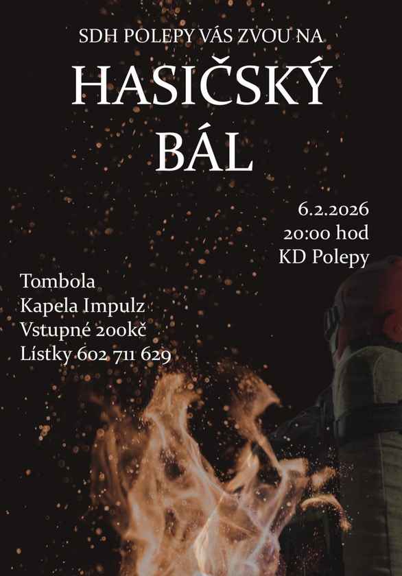 Hasičský bál Polepy 2026 Kdy: 6. 2. 2026 20:00 Kraj: Ústecký Typ akce: kulturní Zpět na kalendář Zobrazit mapu