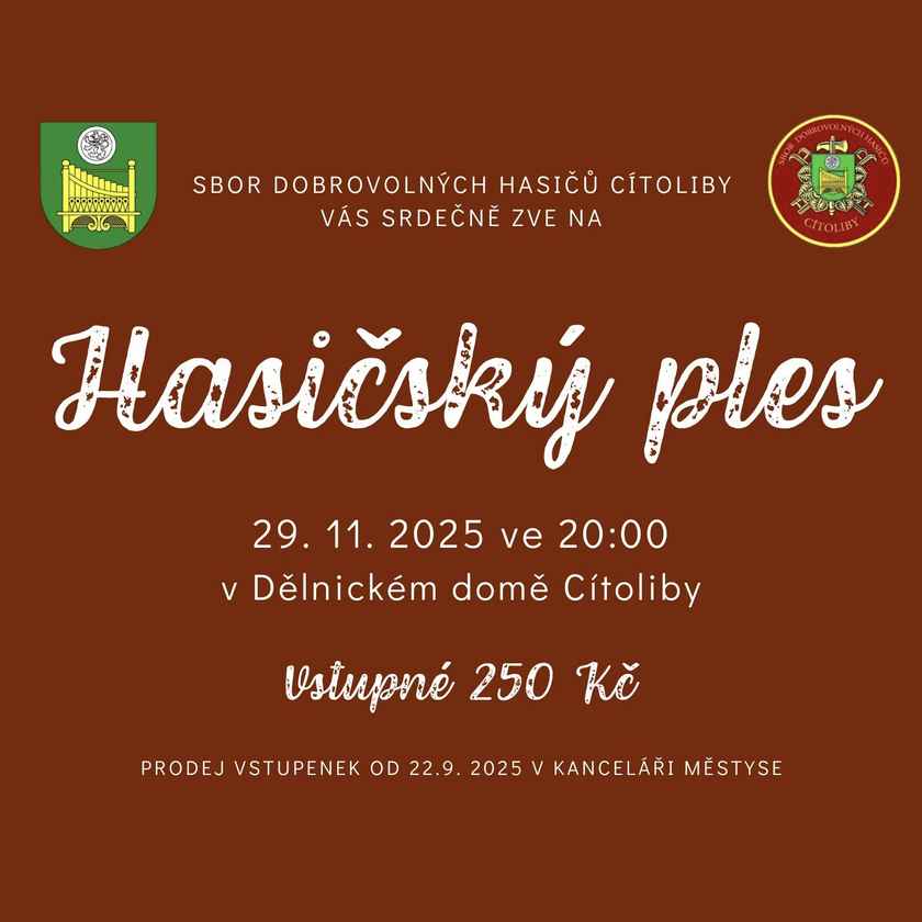 Hasičský ples Kdy: 29. 11. 2025 20:00 Kde: Dělnický dům Cítoliby Kraj: Ústecký Typ akce: kulturní Zpět na kalendář Zobrazit mapu