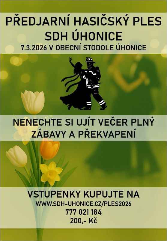 Hasičský ples 2026 Úhonice Kdy: 7. 3. 2026 20:00 Kde: Úhonice Kraj: Středočeský Typ akce: kulturní Zpět na kalendář Zobrazit mapu