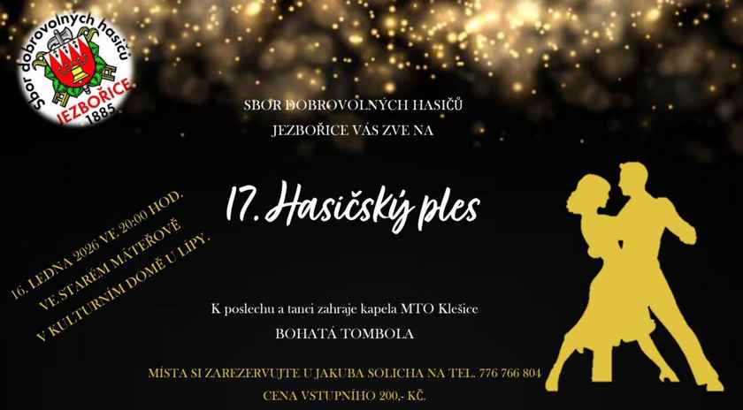 Hasičský ples Jezbořice Kdy: 16. 1. 2026 20:00 Kraj: Pardubický Typ akce: kulturní Zpět na kalendář Zobrazit mapu