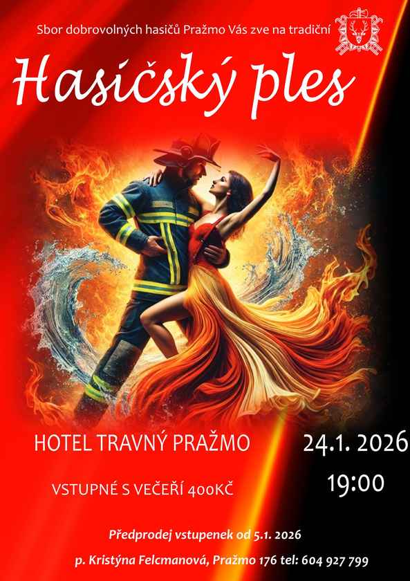 Hasičský ples Pražmo Kdy: 24. 1. 2026 19:00 Kraj: Moravskoslezský Typ akce: kulturní Zpět na kalendář Zobrazit mapu