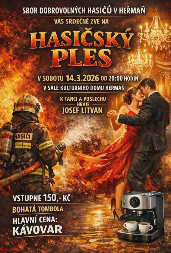 Hasičský ples SDH Heřmaň Kdy: 14. 3. 2026 20:00 Kde: Heřmaň Kraj: Jihočeský Typ akce: kulturní Zpět na kalendář Zobrazit mapu