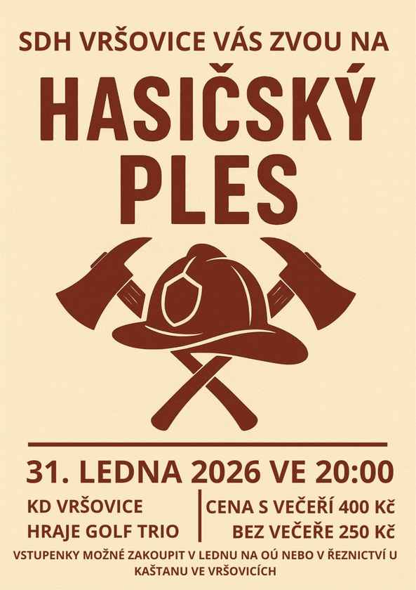 Hasičský ples SDH Vršovice Kdy: 31. 1. 2026 20:00 Kraj: Moravskoslezský Typ akce: kulturní Zpět na kalendář Zobrazit mapu