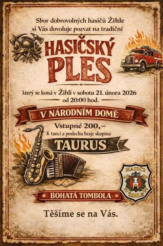 Sbor dobrovolných hasičů Žihle Vás srdečně zve na tradiční hasičský ples.