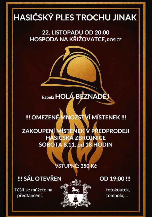 Hasičský ples trochu jinak SDH Rosice Kdy: 8. 11. 2025 19:00 Kde: Hospoda Na Křižovatce Kraj: Pardubický Typ akce: kulturní Zpět na kalendář Zobrazit mapu