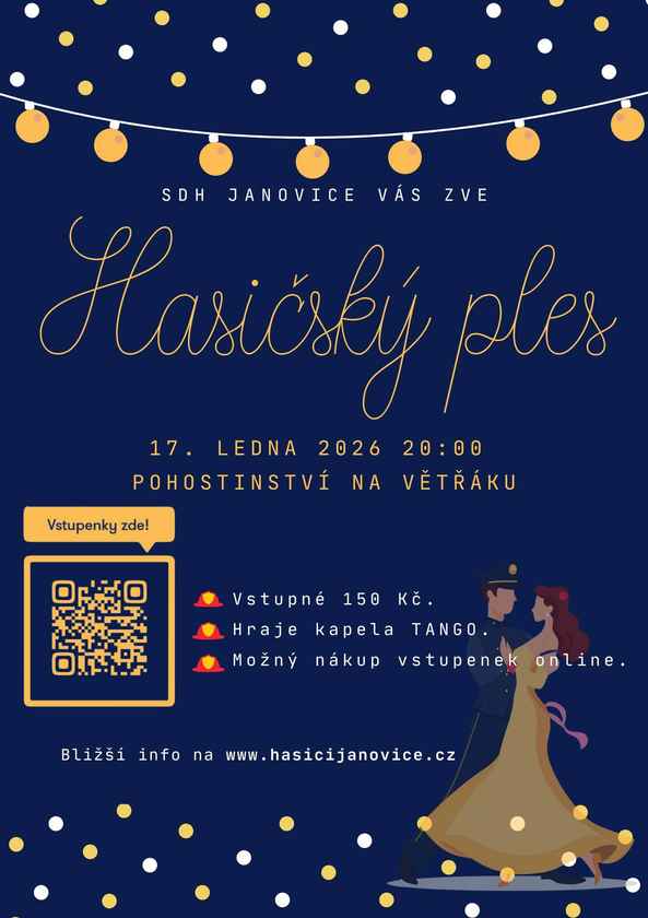Hasičský ples v Janovicích Kdy: 17. 1. 2026 20:00 Kraj: Moravskoslezský Typ akce: kulturní Zpět na kalendář Zobrazit mapu