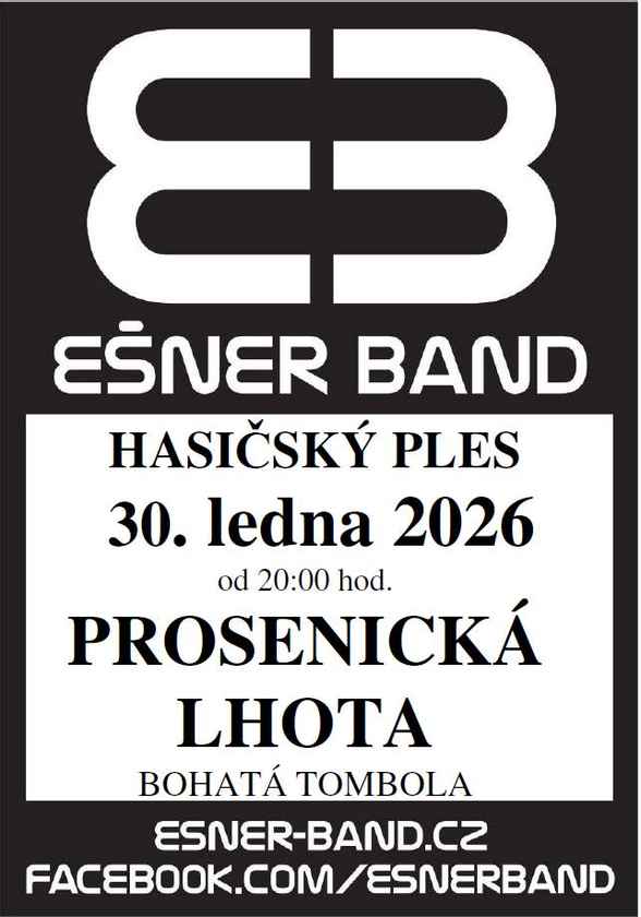 Hasičský ples v Prosenické Lhotě Kdy: 30. 1. 2026 20:00 Kraj: Středočeský Typ akce: kulturní Zpět na kalendář Zobrazit mapu