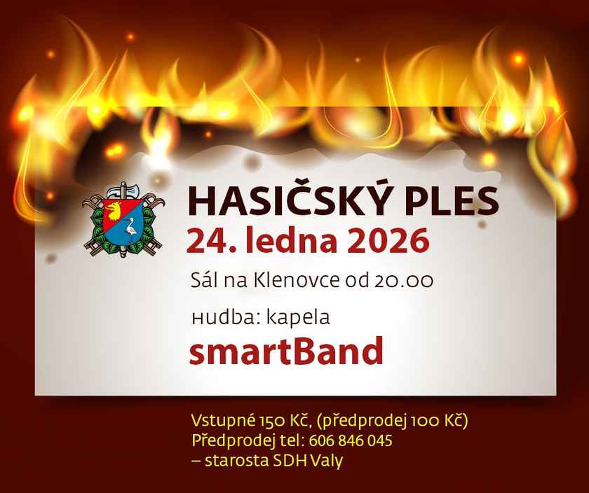 Hasičský ples Valy Kdy: 24. 1. 2026 20:00 Kraj: Pardubický Typ akce: kulturní Zpět na kalendář Zobrazit mapu