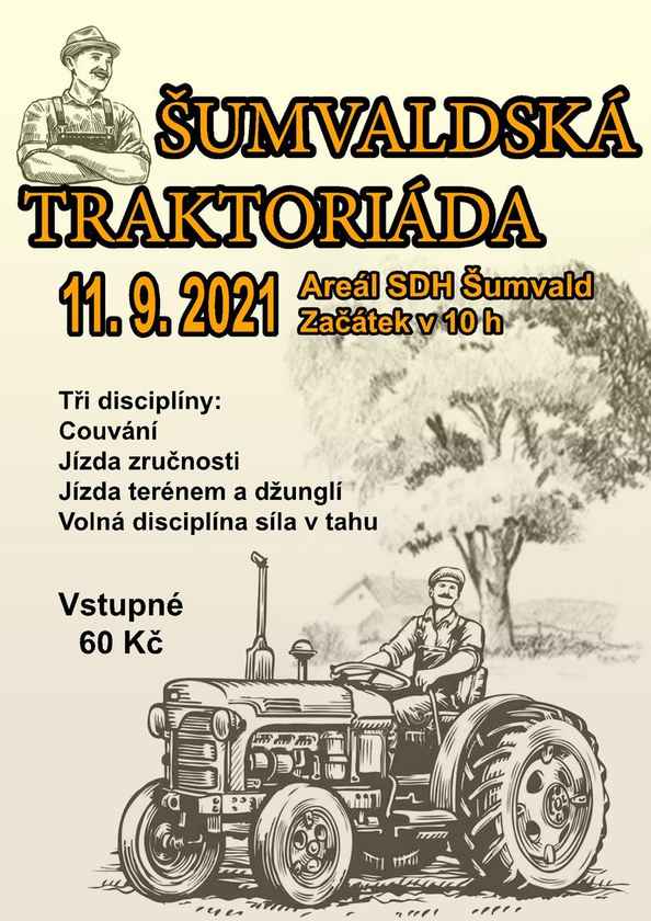 Šumvaldská traktoriáda Zpět Sdílejte článek: Sdílet na Facebook Sdílet na Facebook Kdy: 11. 9. 2021 10:00 Kde: Šumvald Lokalita: Olomoucký Typ akce: kulturní Zobrazit mapu