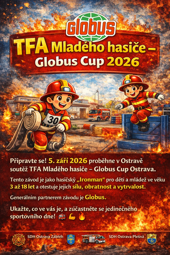 Už v sobotu 5. září 2026 se v Ostravě uskuteční další ročník soutěže TFA Mladého hasiče – Globus Cup Ostrava. Tento atraktivní závod v duchu hasičského „Ironmana“ je určen dětem a mládeži ve věku 3–18 let.