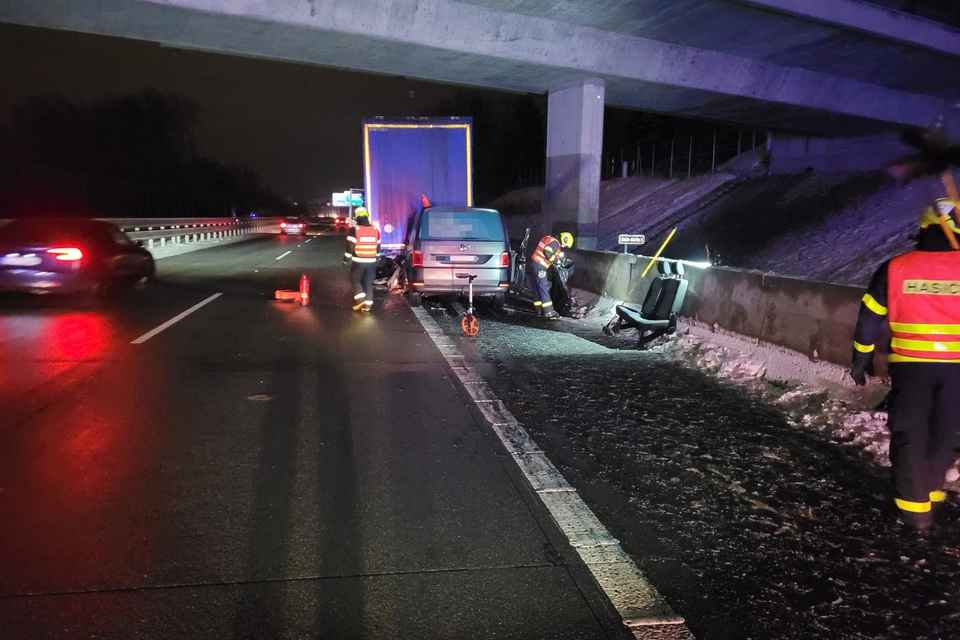 Noční střet kamionu s dodávkou na dálnici D48 si vyžádal zásah hasičů, kteří museli z havarovaného vozidla vyprostit tři osoby zaklíněné uvnitř.