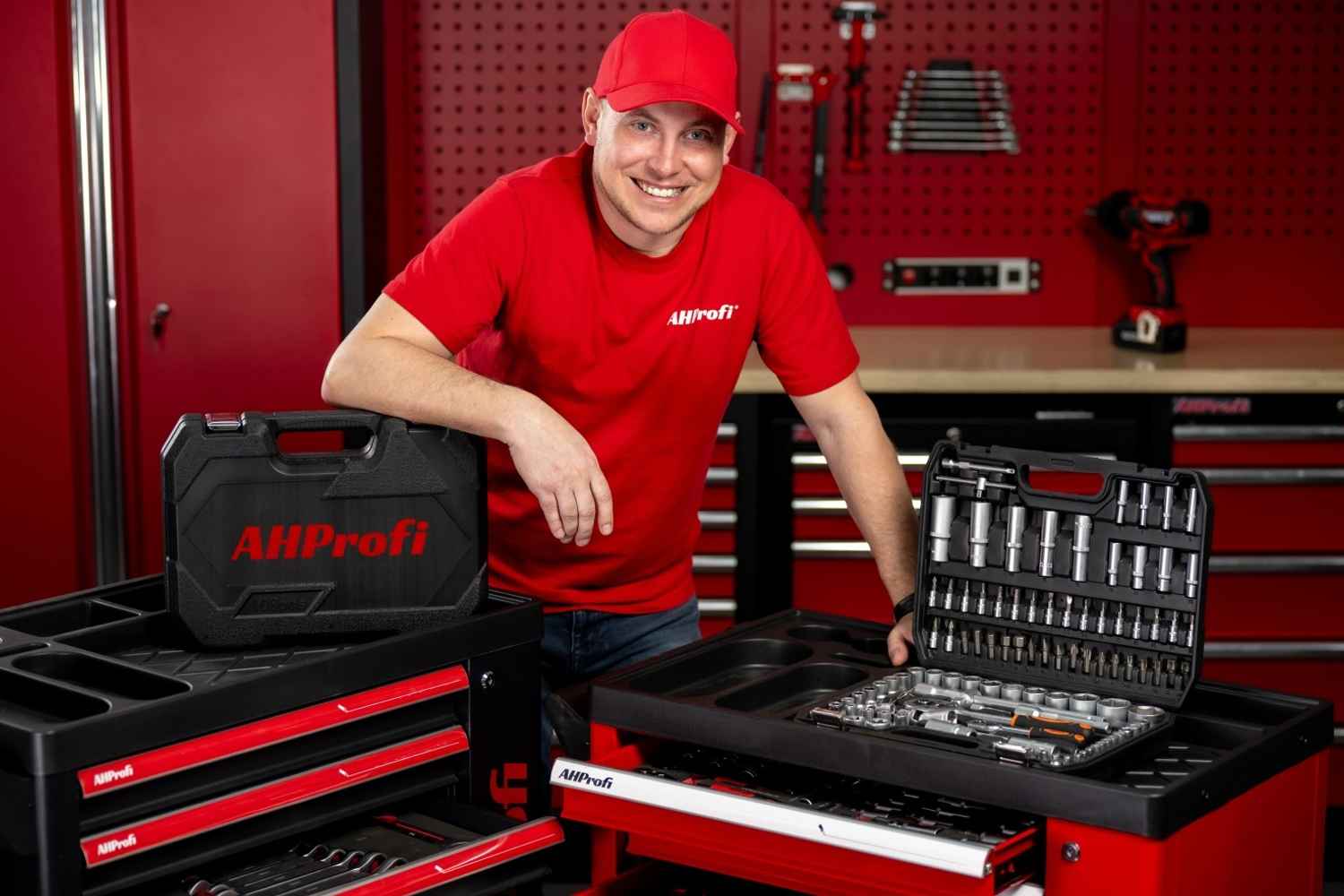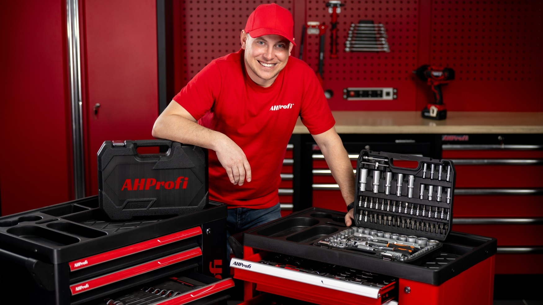 AHProfi je plzeňská rodinná firma, která od roku 1995 vybavuje dílny lidem, co si nešpiní košile, ale ruce. Říkáme si Hračkářství pro velký kluky – a myslíme tím poctivý vercajk, ne hračky do vitrínky. Z jedné prodejny jsme vyrostli v dodavatele pro Česko i Slovensko a držíme kvalitu, která se v provozu nezlomí a v rozpočtu nepálí. Začínali jsme s pár vlaječkami a velkou chutí dělat věci poctivě. Dnes pod vlastní značkou nabízíme všechno od ráčen a gola sad přes vrtačky, klíče a vozíky až po celé sestavy dílenského nábytku. Berou nás mechanici, řemeslníci i domácí mistři – všichni, kdo potřebují, aby to drželo.