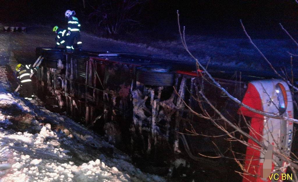 Dnes krátce po šesté ráno zasahovali profesionální hasiči z Benešova společně s dobrovolnými jednotkami z Divišova, Choratic, Ostředku a Sázavy u dopravní nehody autobusu, který skončil převrácený na bok v poli. Uvnitř zůstalo třináct cestujících, kteří se po nehodě nedokázali sami dostat ven. Hasiči jim proto pomáhali bezpečně vystoupit.