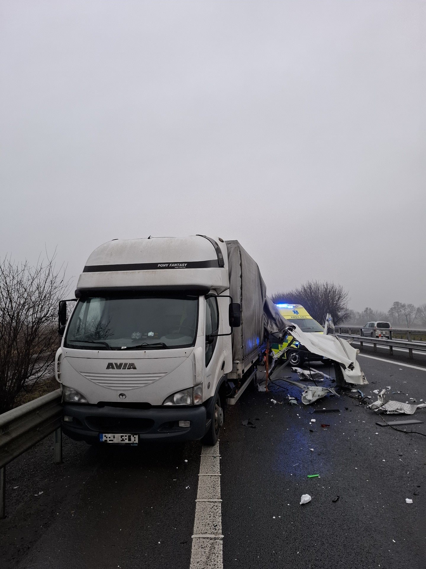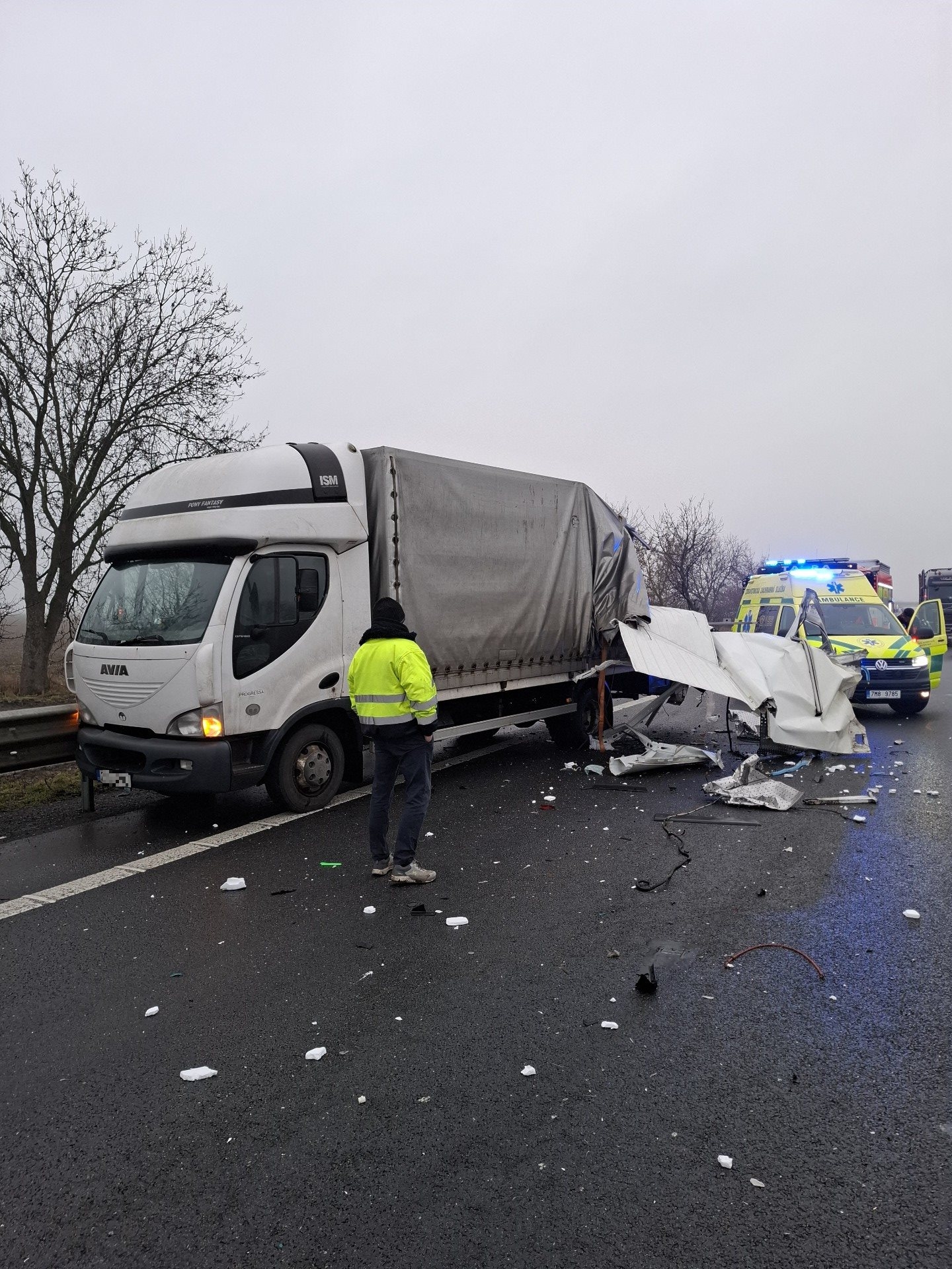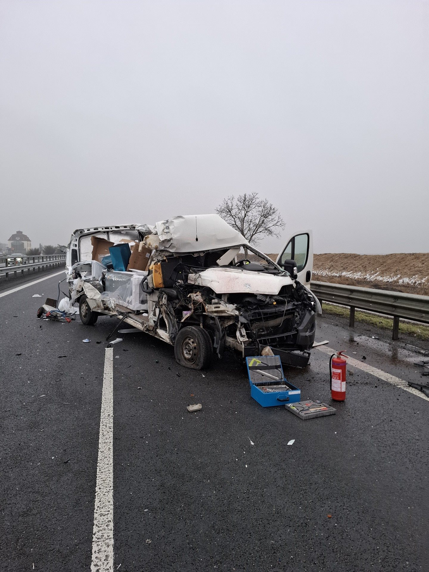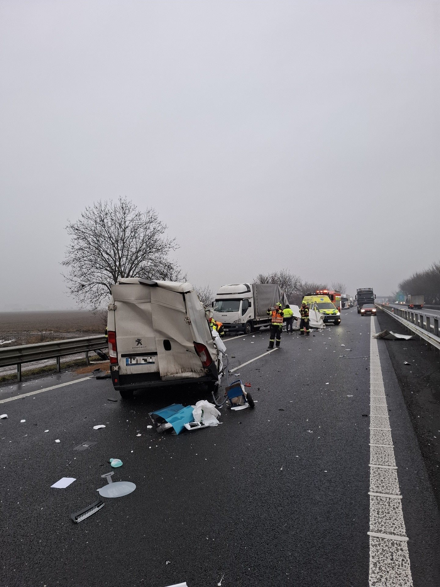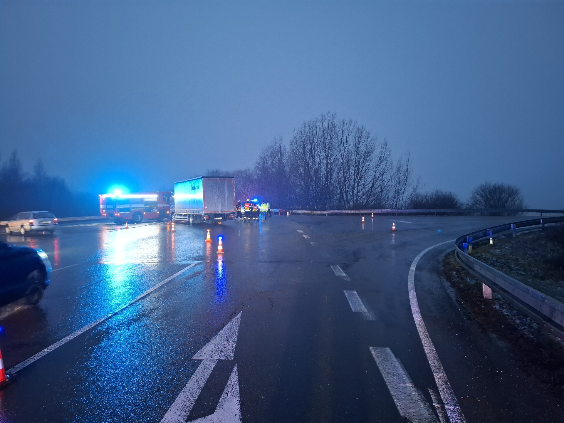 Dálnice byla v místě nehody zcela uzavřena, v současné době je provoz obnoven v levém jízdním pruhu.