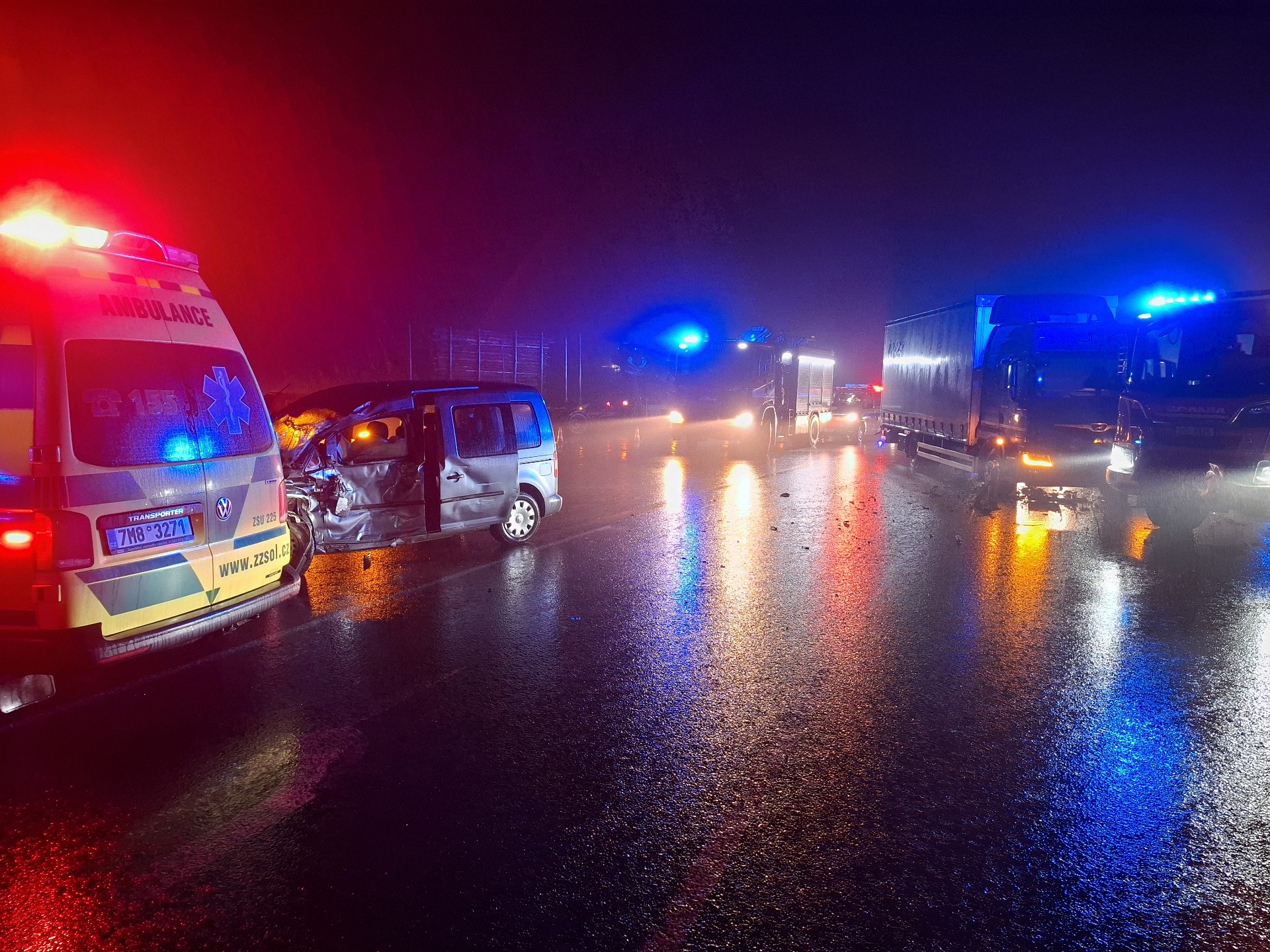 K první, tragické dopravní nehodě, došlo na silnici I/44 u Zábřeha, kde se střetlo nákladní a osobní vozidlo. Hasiči na místě asistovali Zdravotnické záchranné službě a Policii České republiky, provedli protipožární opatření a zajistili únik provozních kapalin.