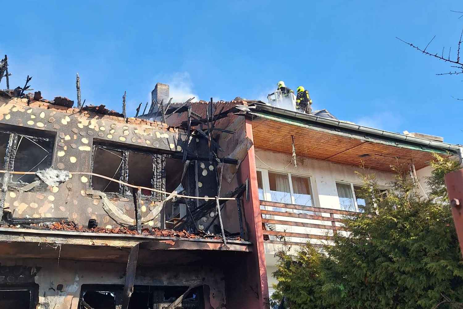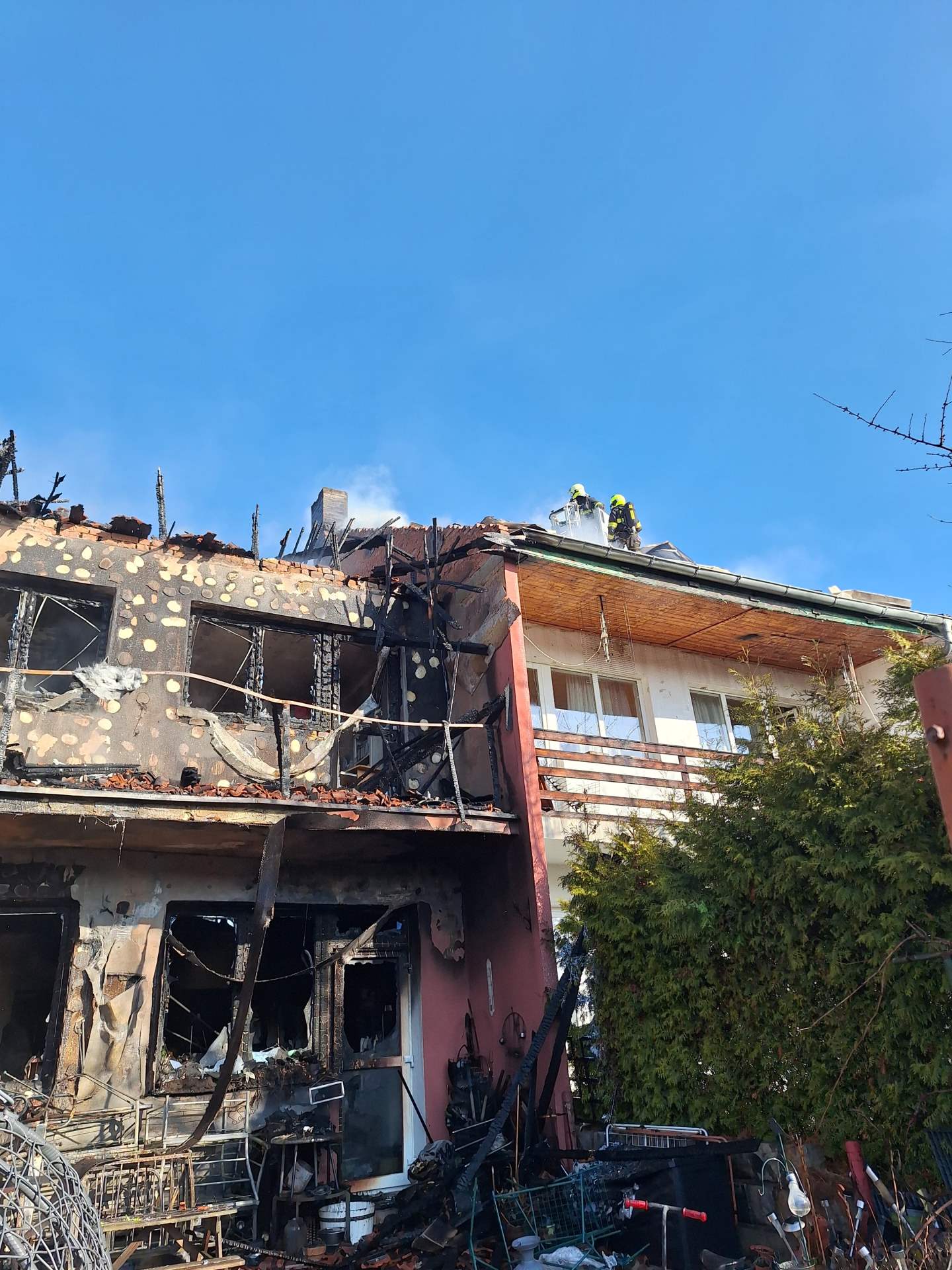 Podle informací z místa události hasiči pokračují v zásahu také rozebíráním střechy druhého domu, aby mohli objekt odvětrat. Třetí dům v řadě současně kontrolují pomocí termokamery, zda se v konstrukcích nešíří skrytá ohniska požáru.
