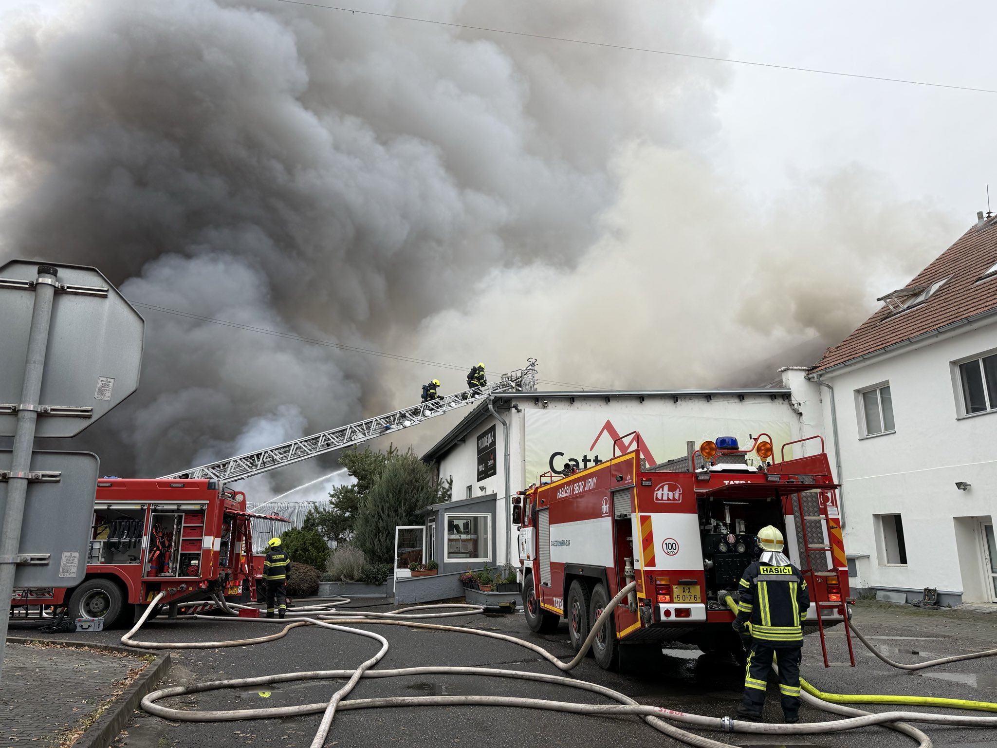 Plameny se daří držet uvnitř soustavy tří propojených hal, ve kterých je uskladněné nářadí a automobilové součástky. Zranění naštěstí nikdo neutrpěl.