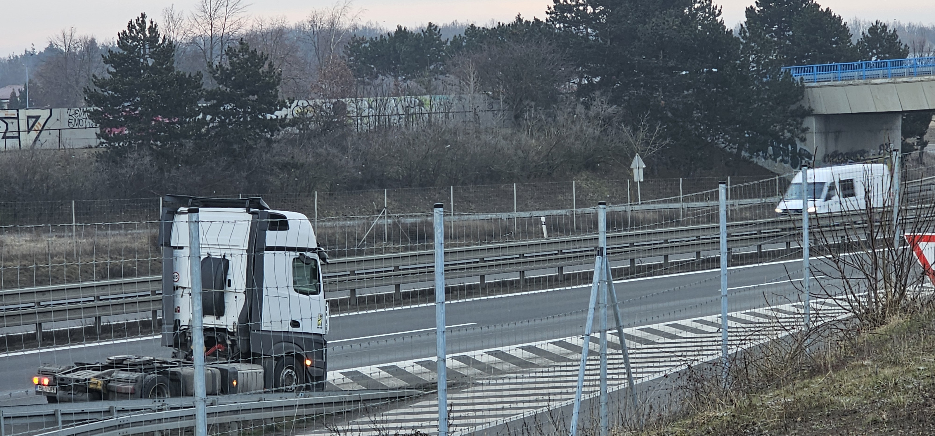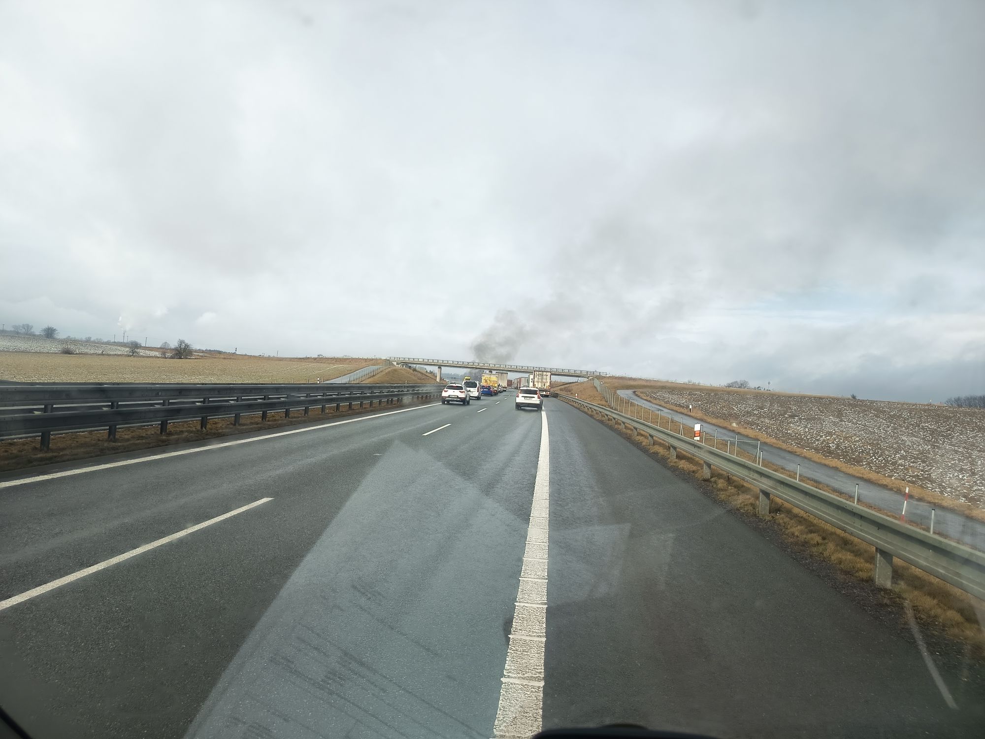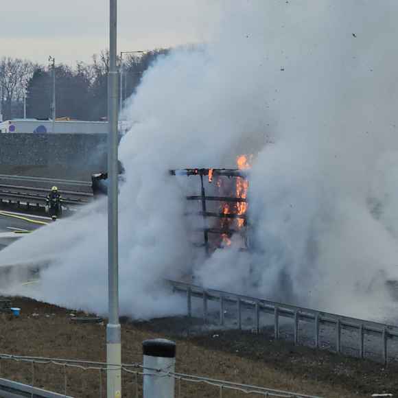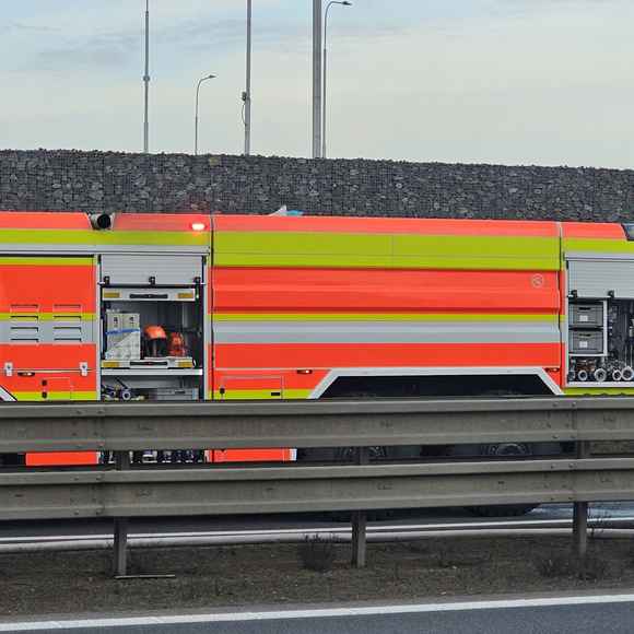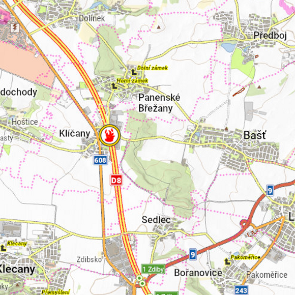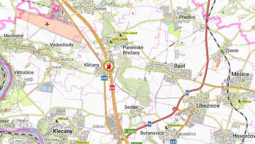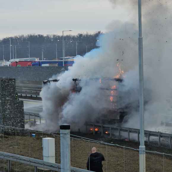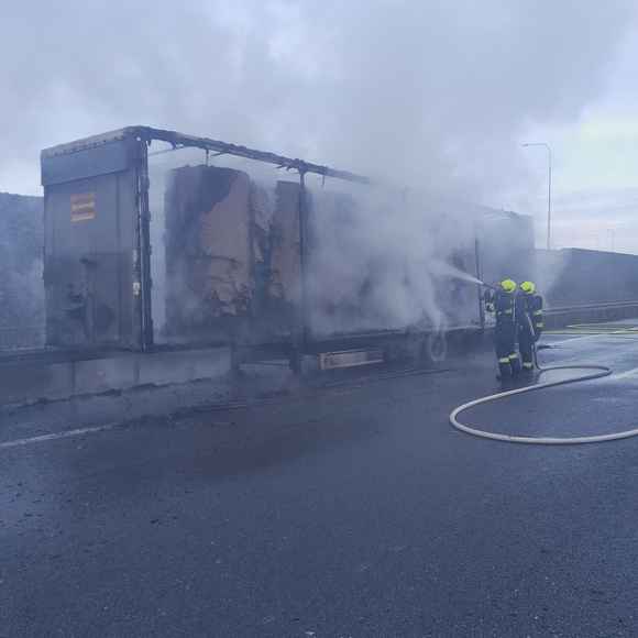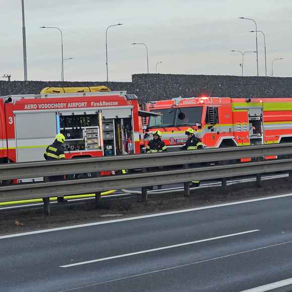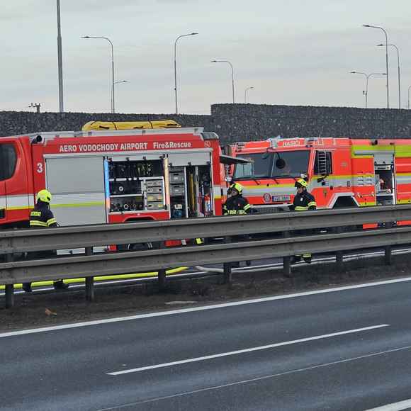 Dnes krátce po půl osmé ráno vyjížděli hasiči i policisté k nahlášenému požáru kamionu na dálnici D8 u obce Klíčany.