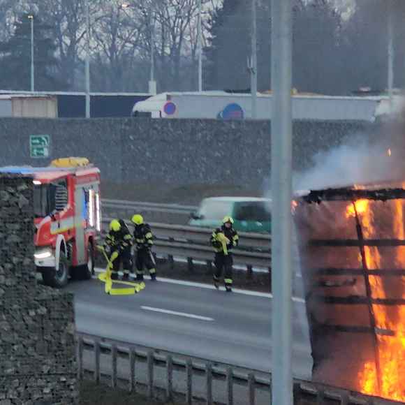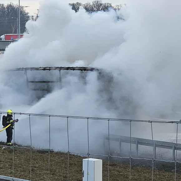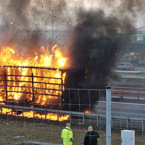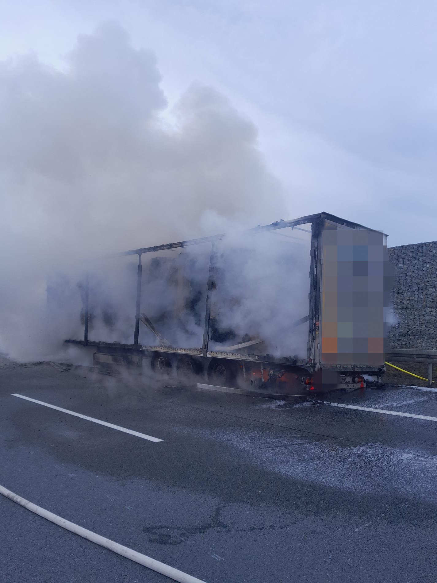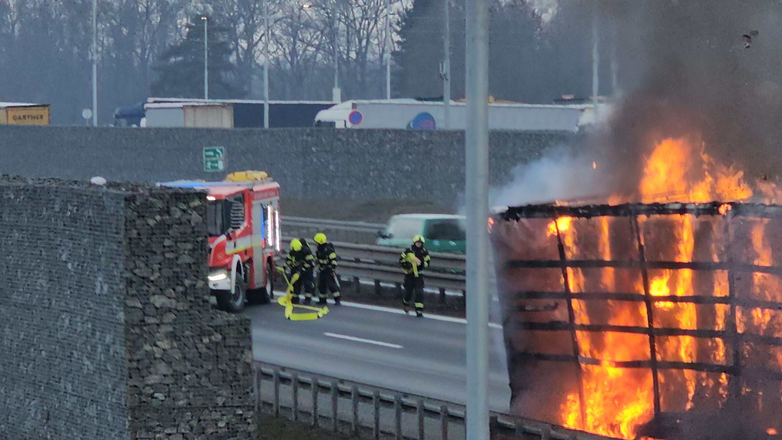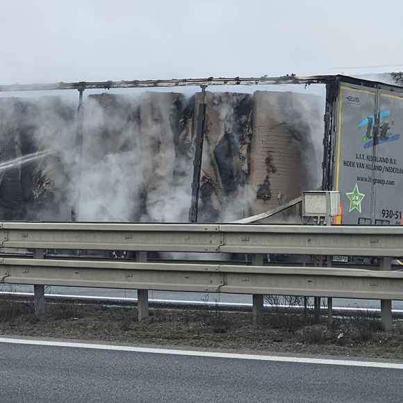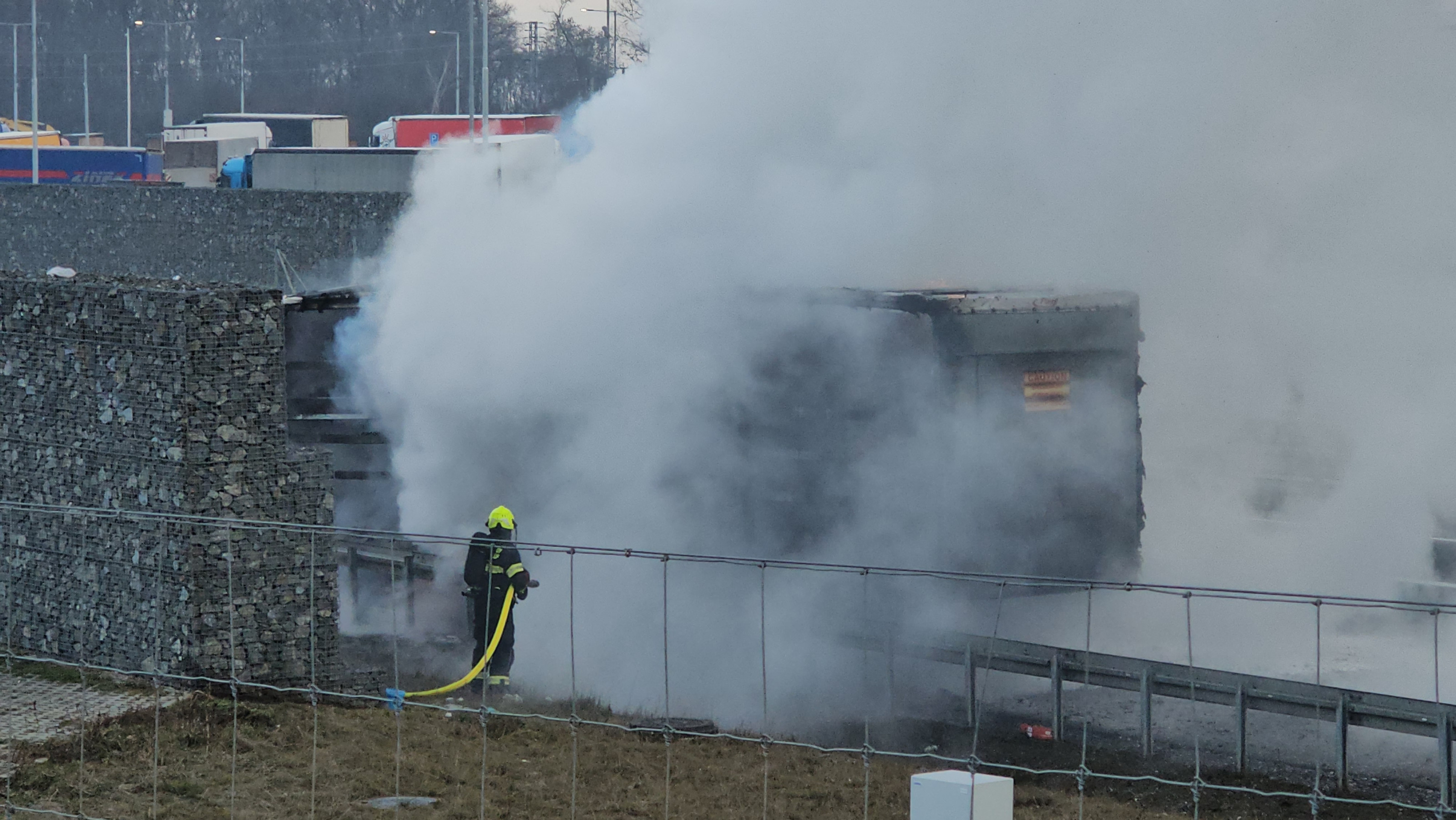 Na místě hořel v odstavném pruhu návěs kamionu, který převážel lisovaný papír v rolích. Tento materiál se obecně velmi špatně hasí a k jeho uhašení je potřeba větší množství hasebních látek, v tomto případě vody, proto došlo během hasebních prací k uzavření pruhu dálnice.