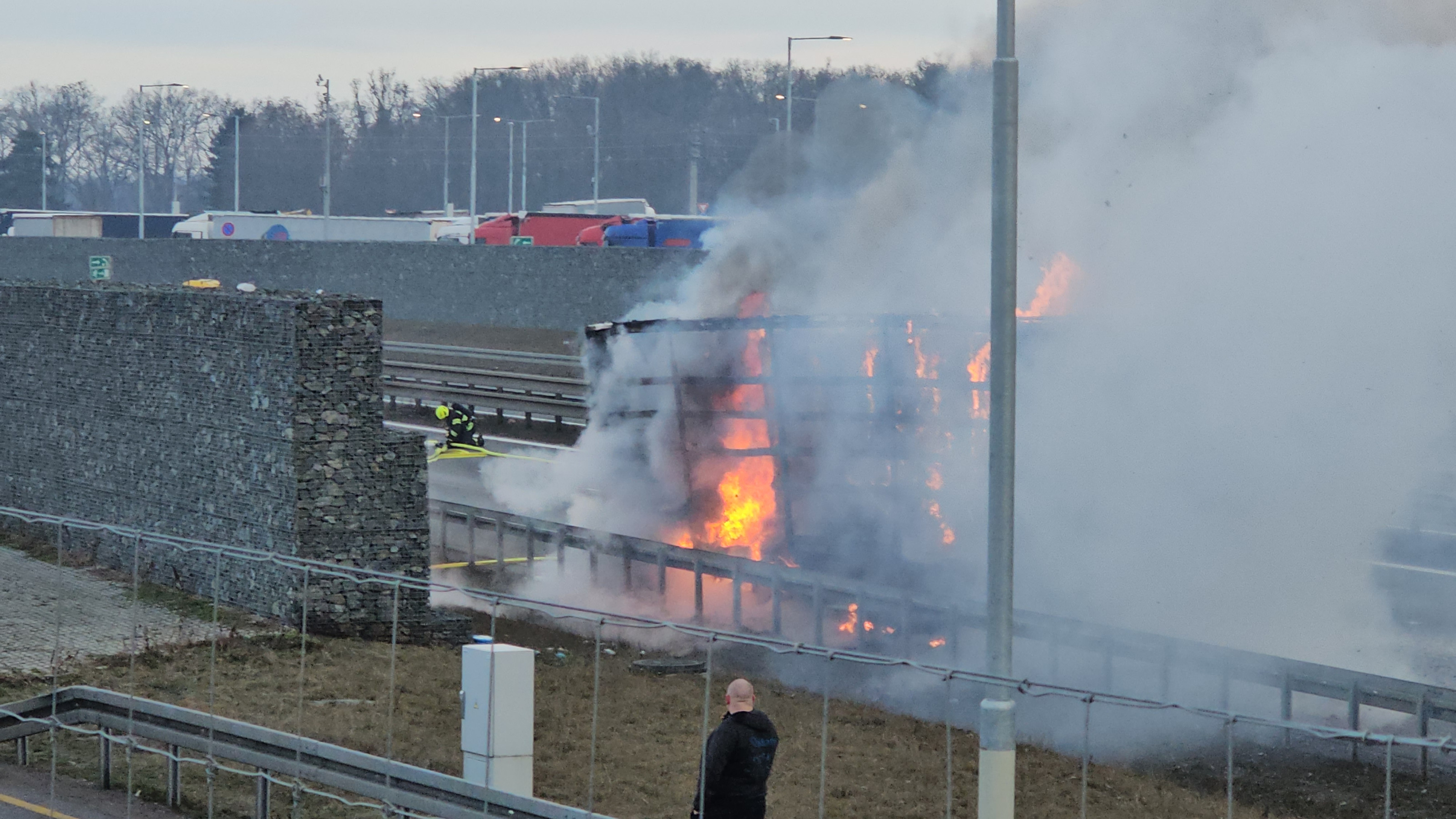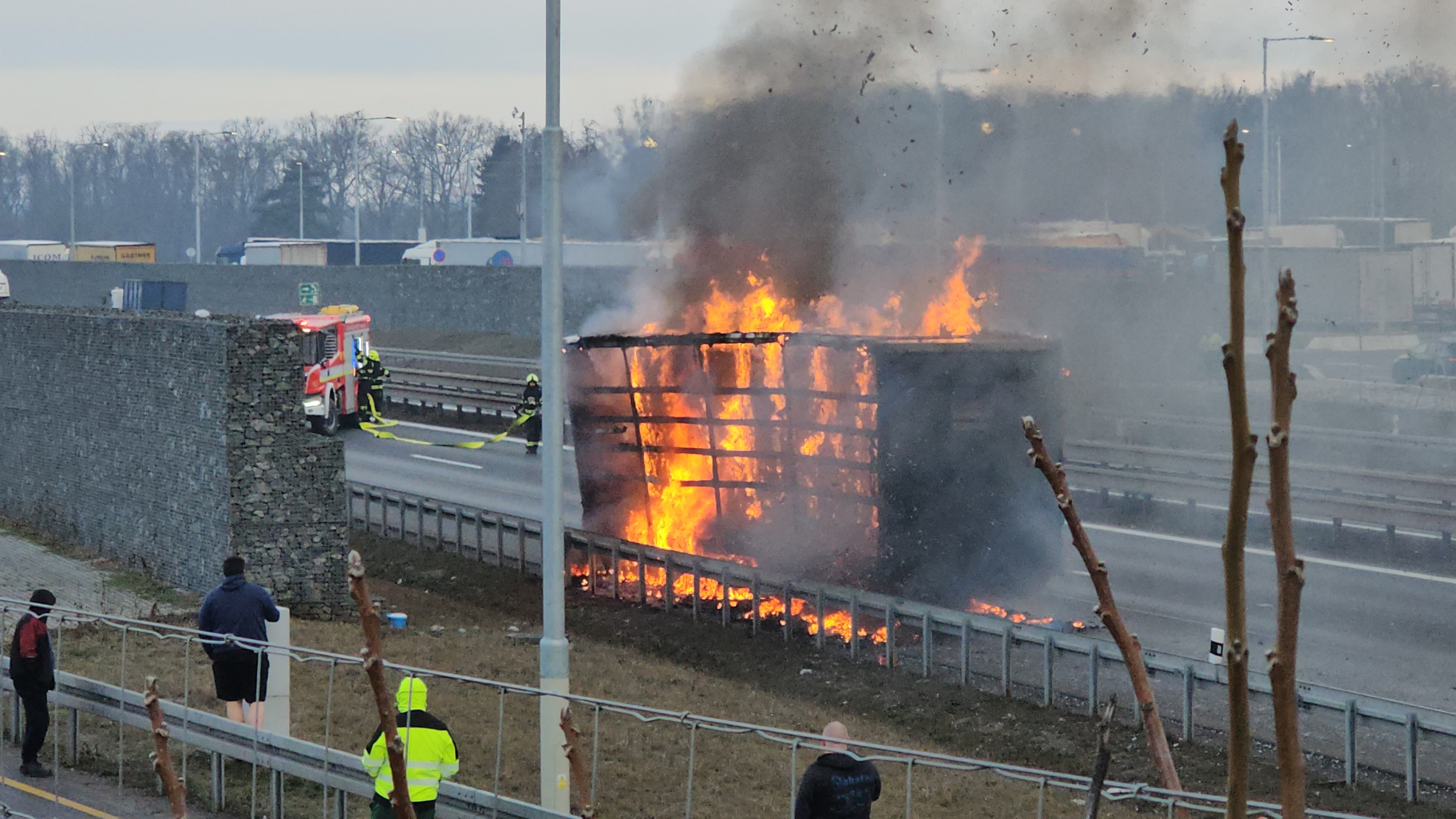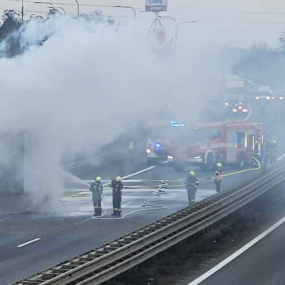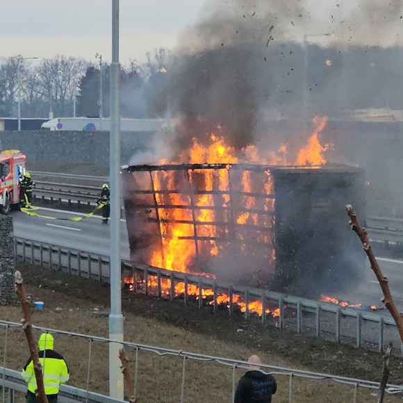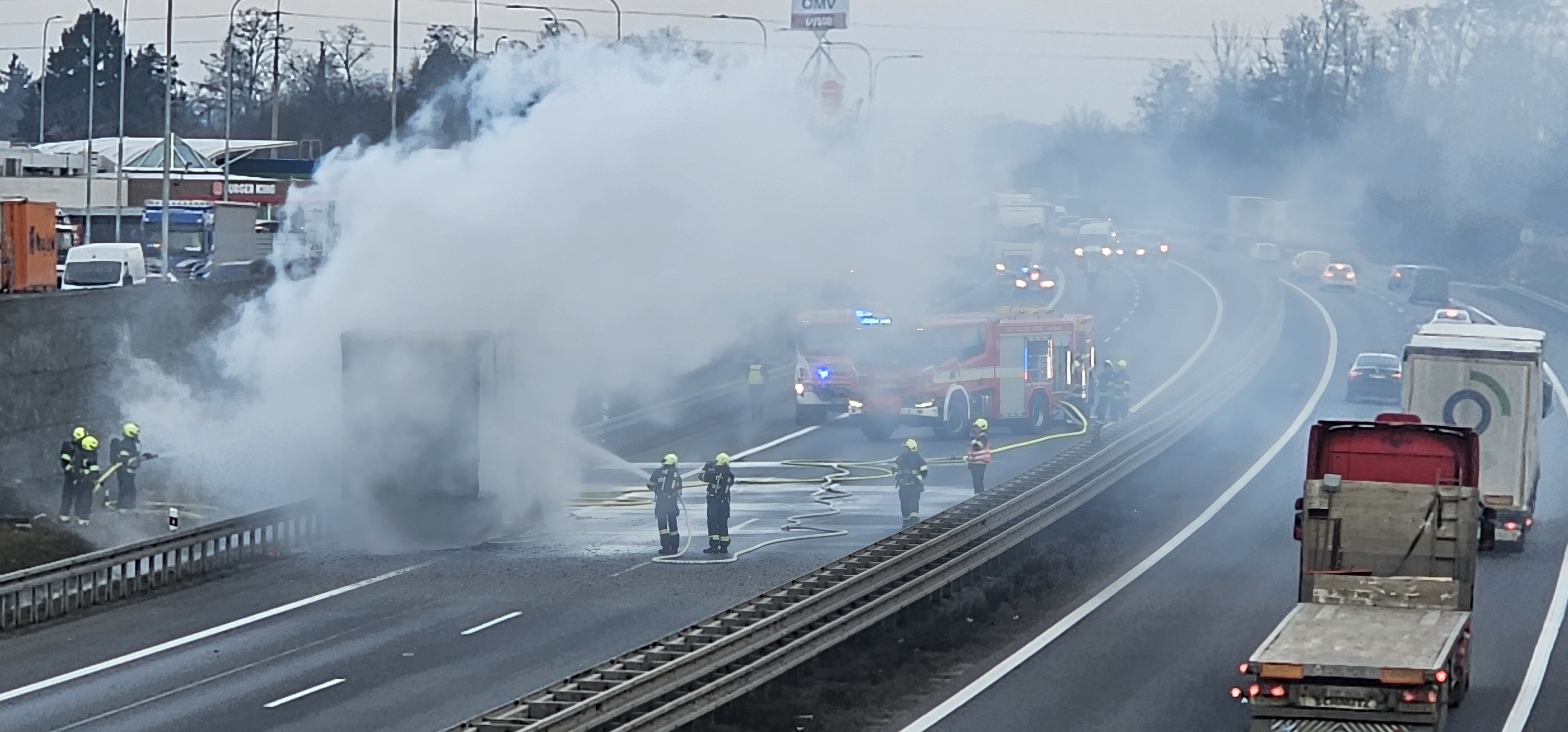 AKTUÁLNĚ: Hořící kamion zastavil provoz na dálnici