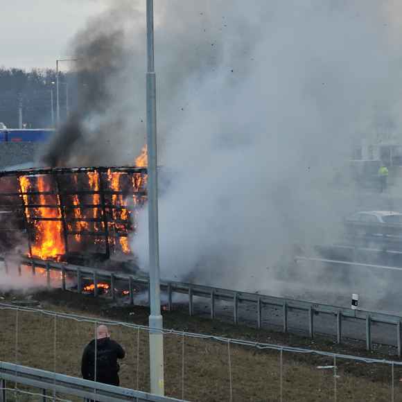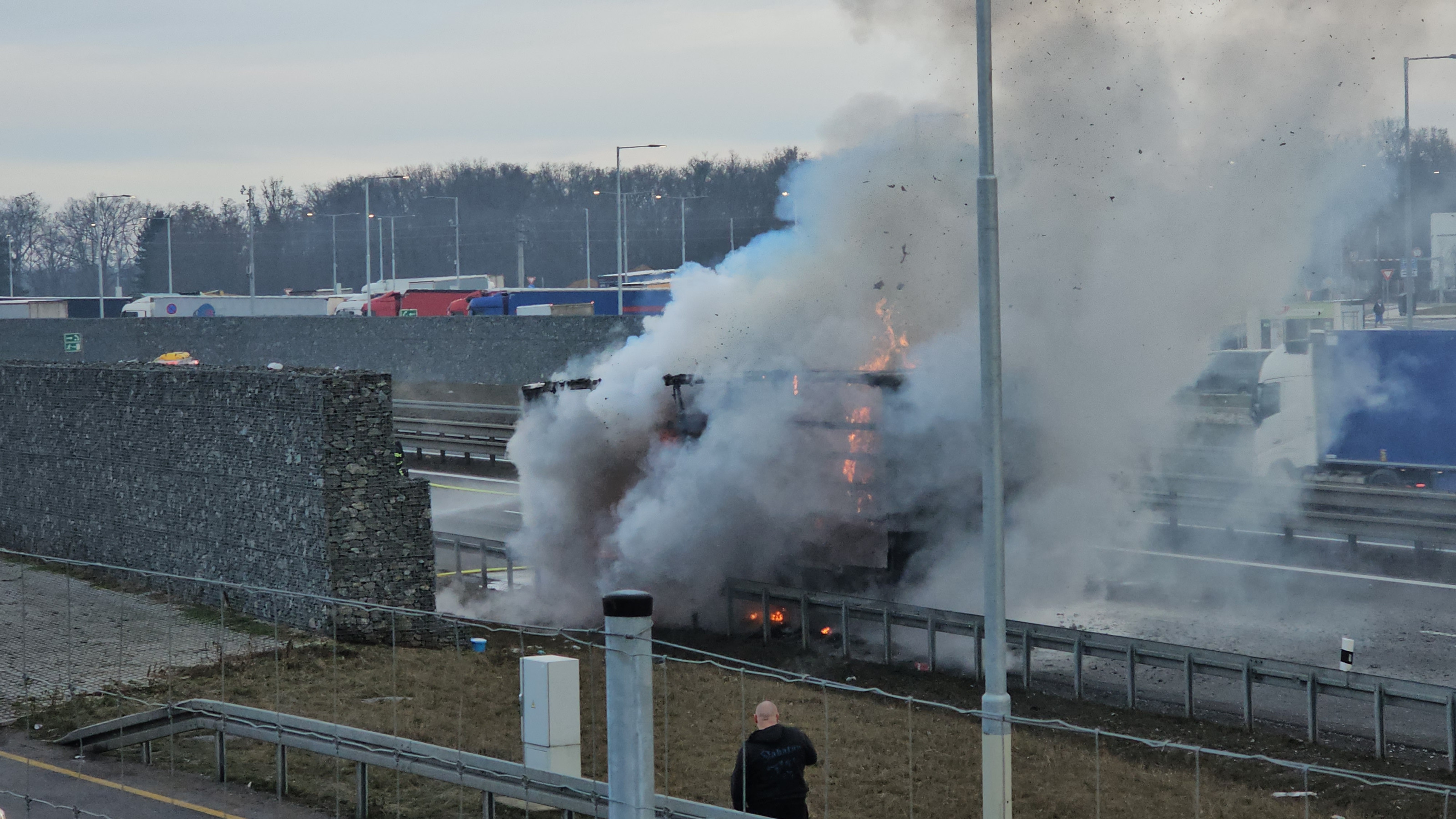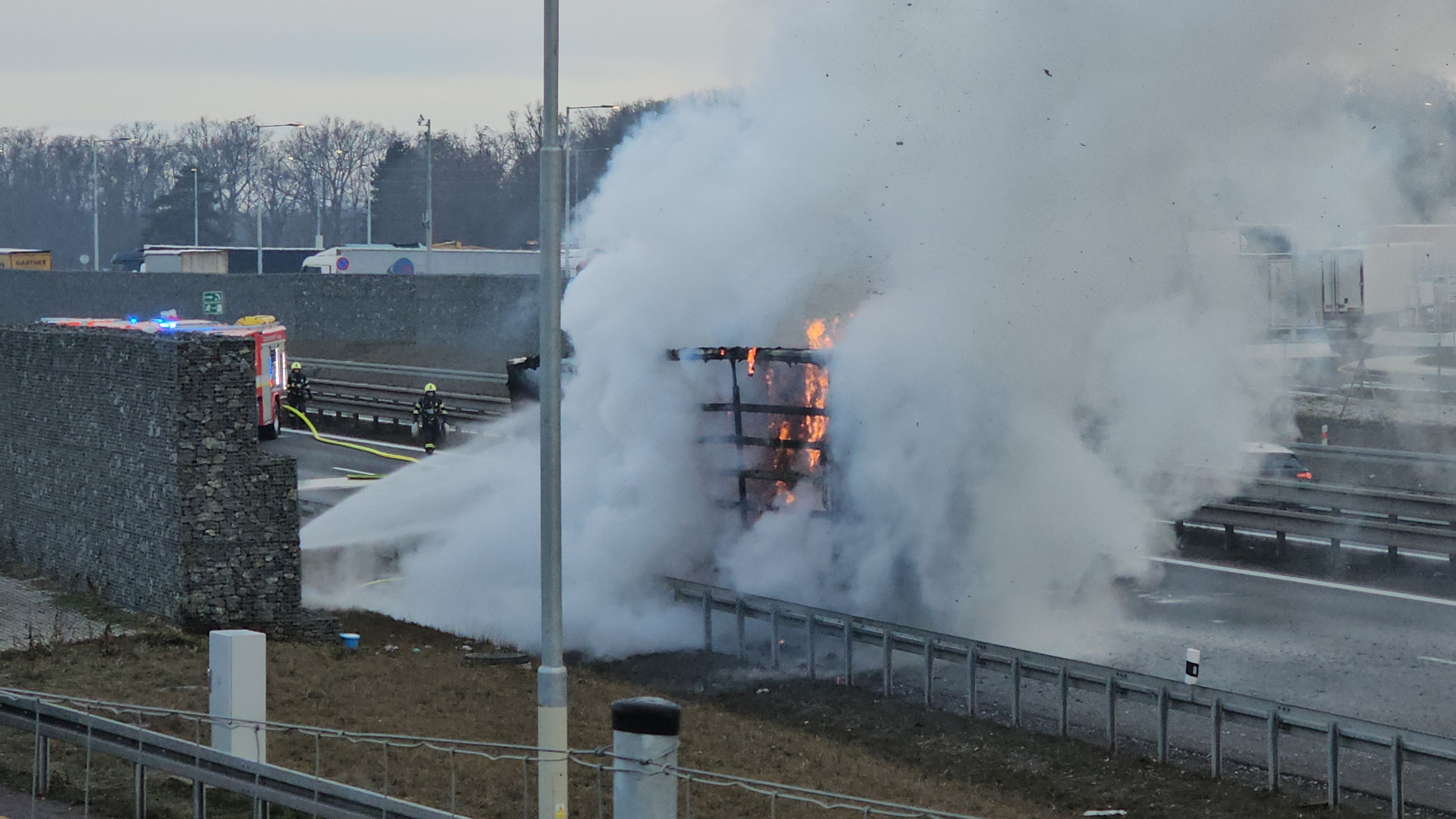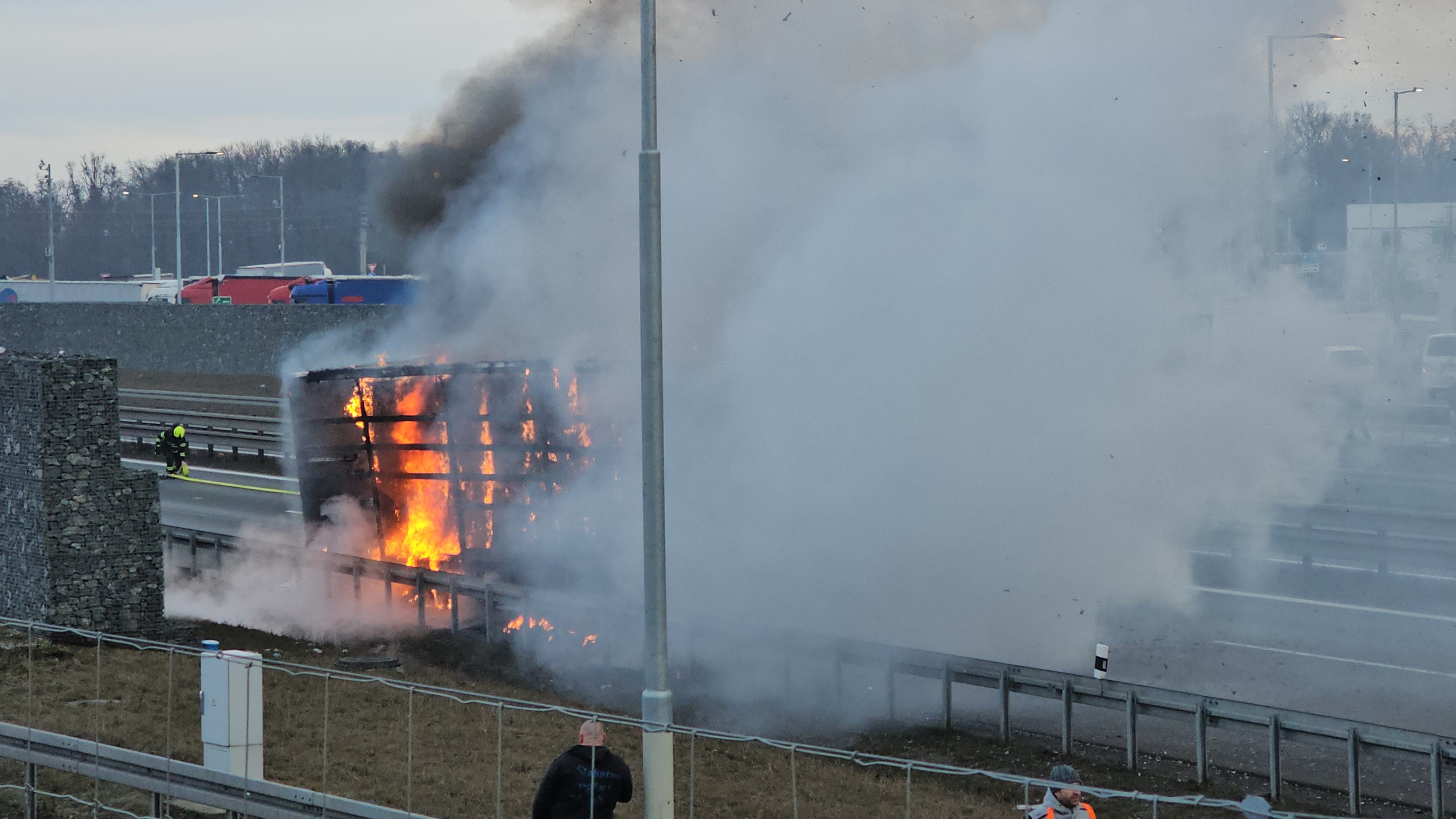 AKTUÁLNĚ: Hořící kamion zastavil provoz na dálnici