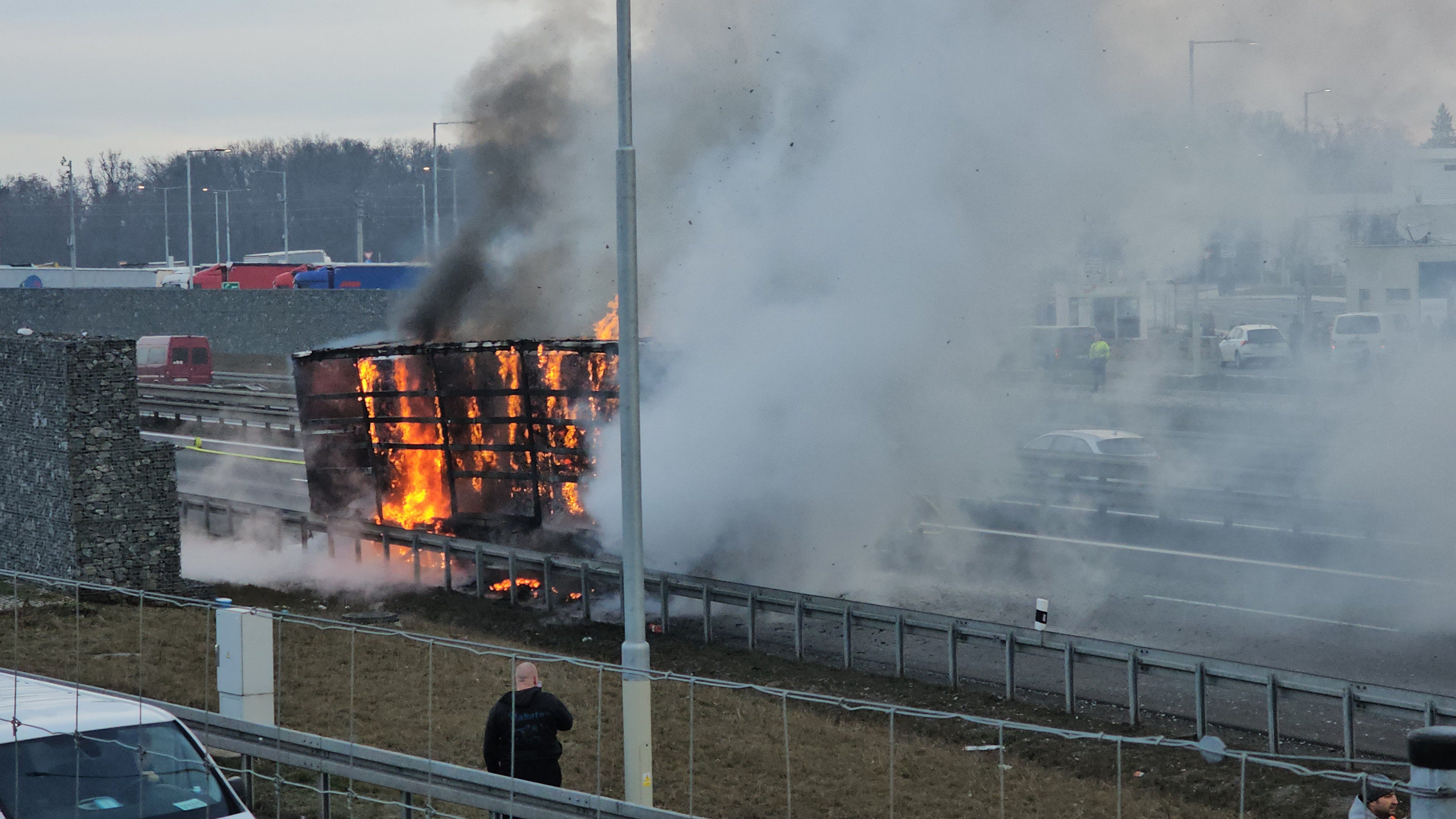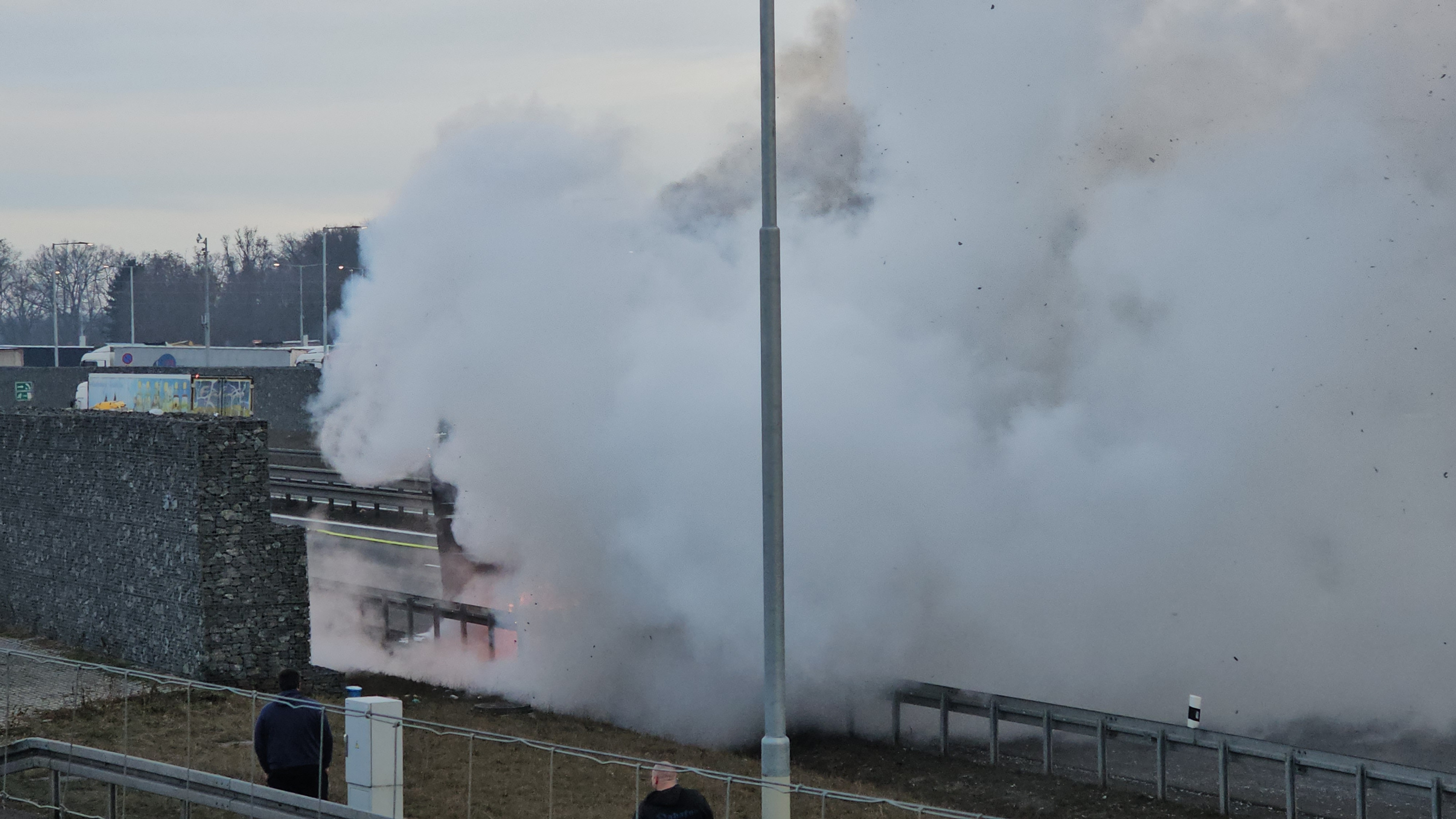 Toto opatření se zavádí vždy s ohledem na bezpečnost zasahujících hasičů i ostatních řidičů, protože nelze vyloučit odlet předmětů z hořícího vozidla. Prvotní předpoklad uzavření dálnice byl přibližně dvě hodiny.