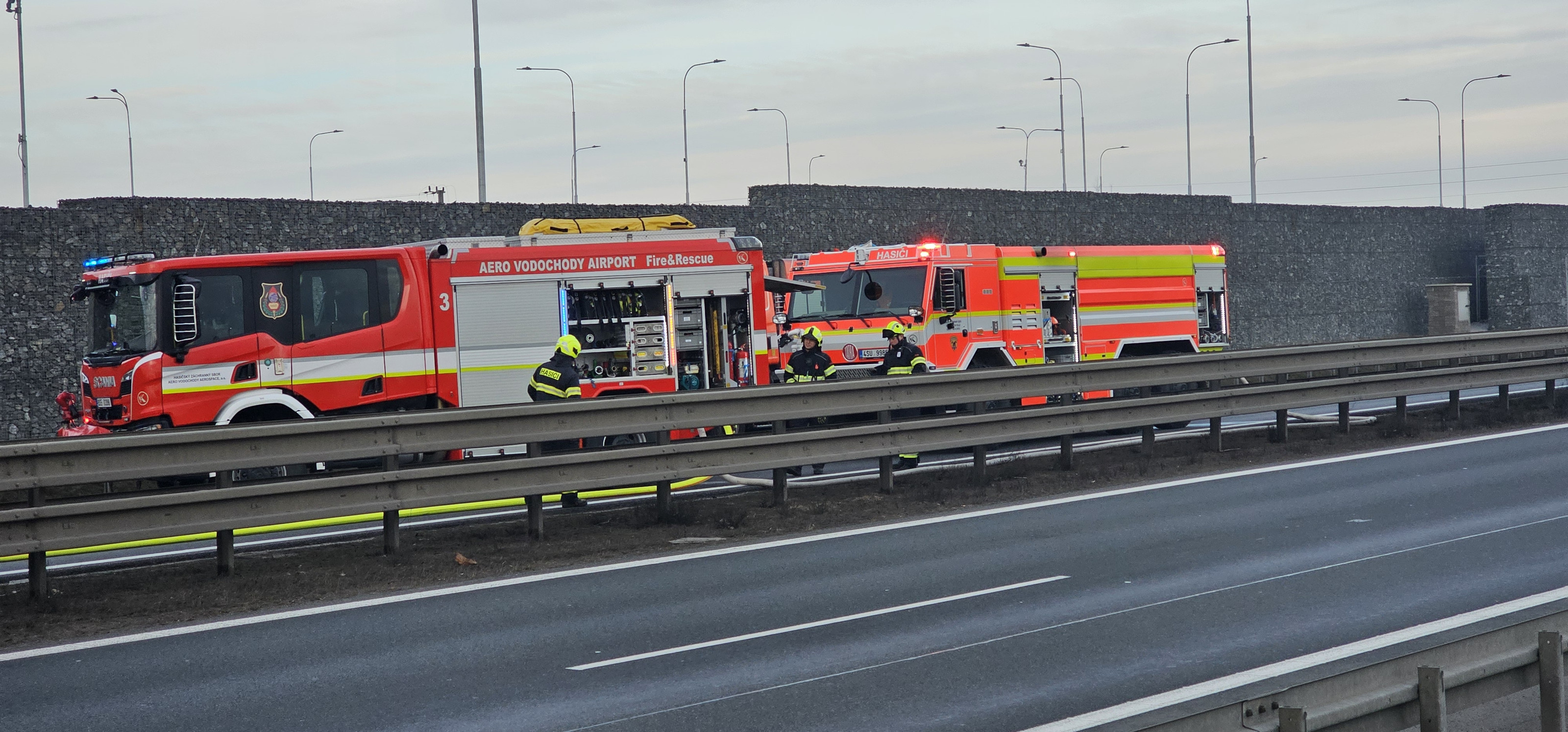"Na místě zasahují profesionální hasiči z Kralupy nad Vltavou společně s profesionálními hasiči podniku AERO Vodochody AEROSPACE a.s.. Dále k místu vyjely dobrovolné jednotky obcí Dolínek a Úžice," sdělili hasiči.