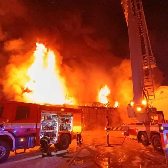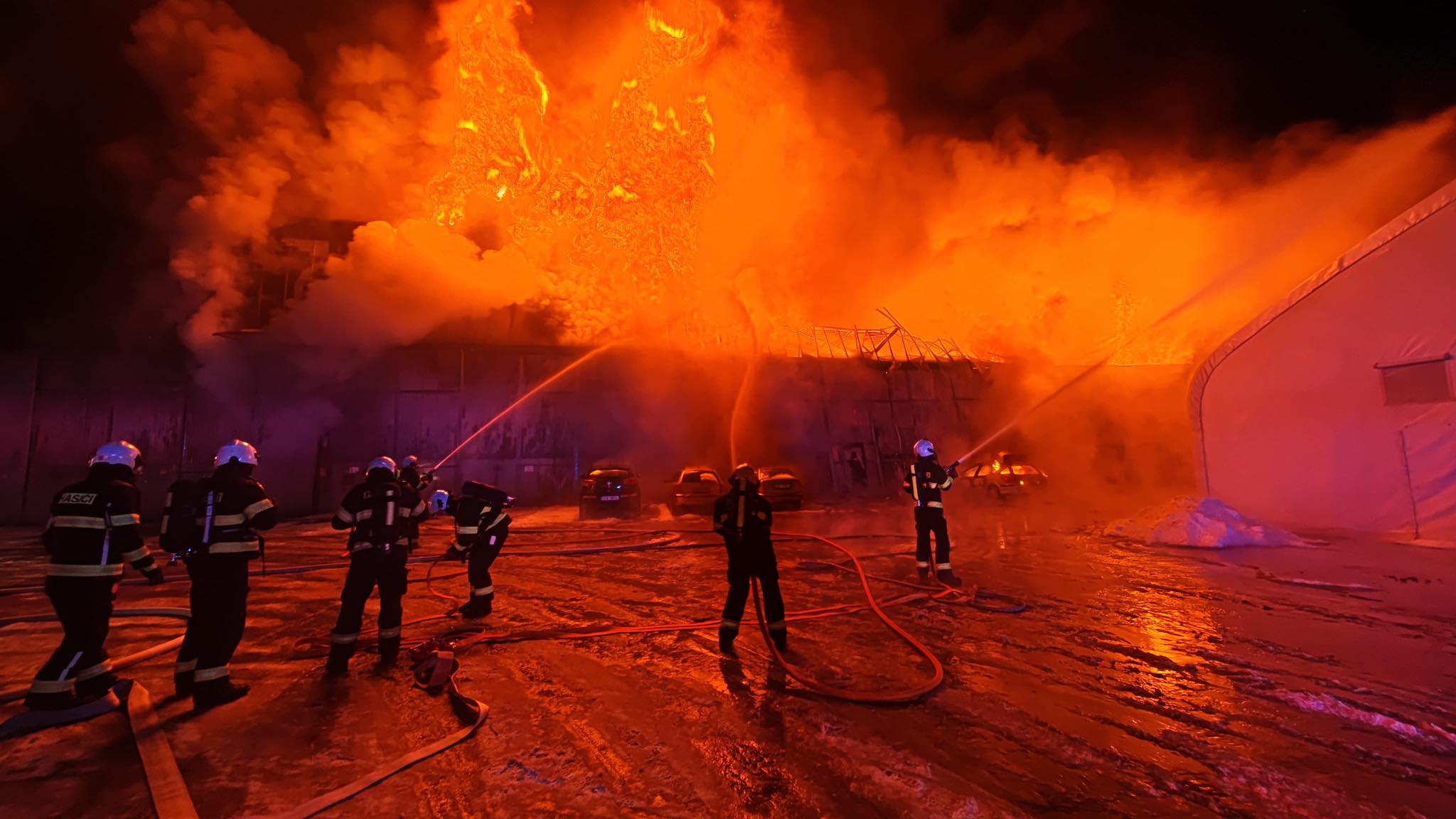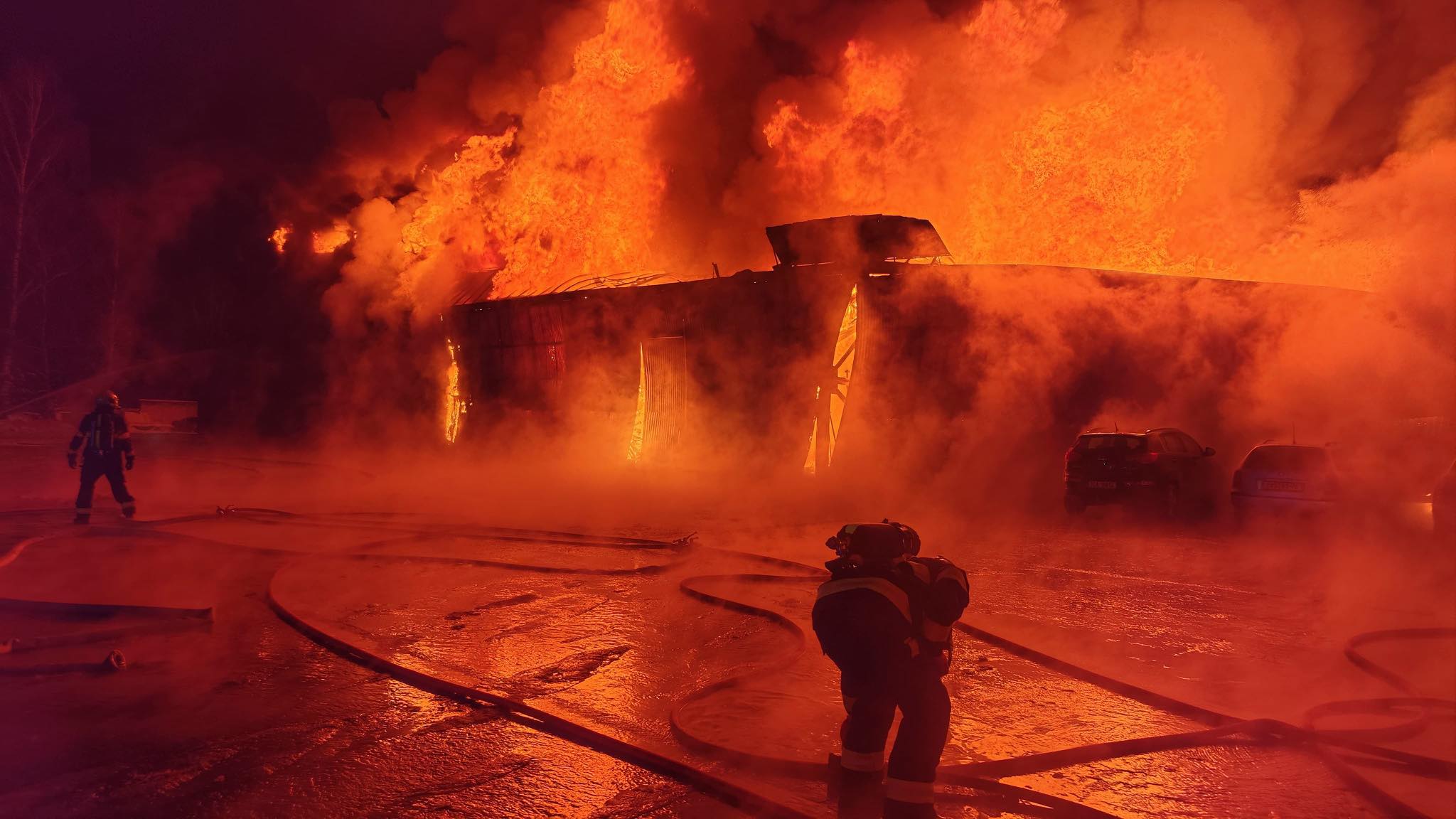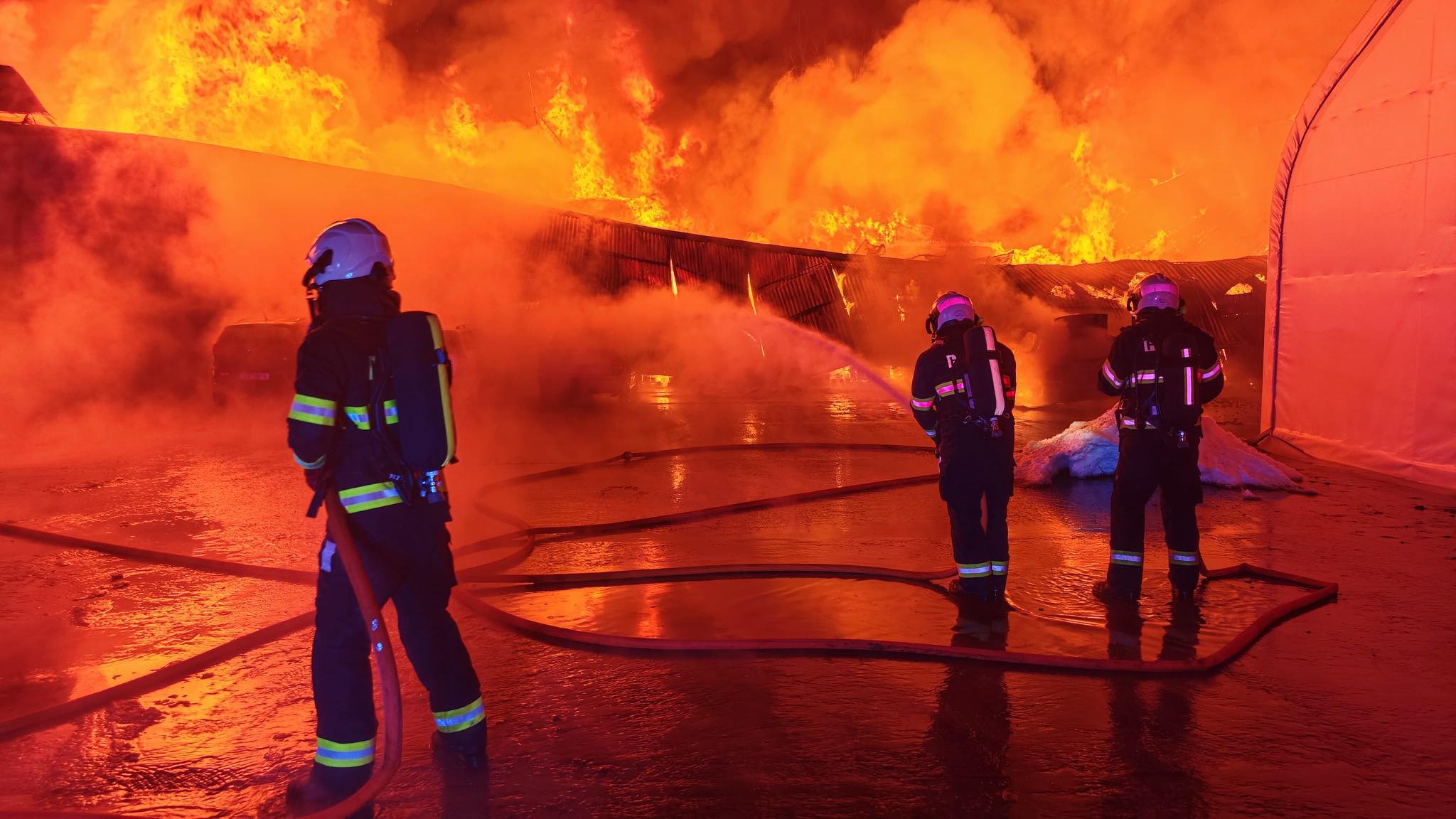 AKTUÁLNĚ: Ranní požár skladové haly si vyžádal třetí stupeň poplachu