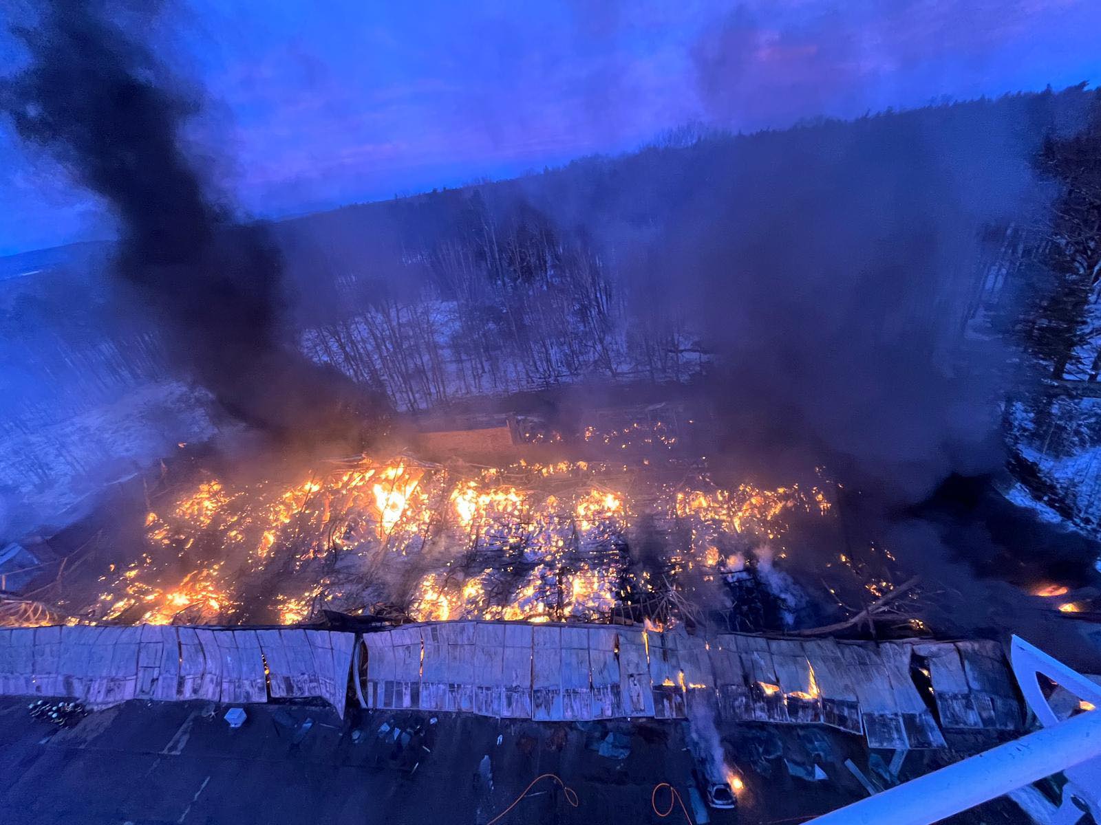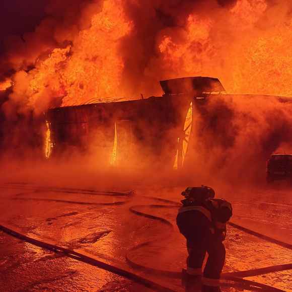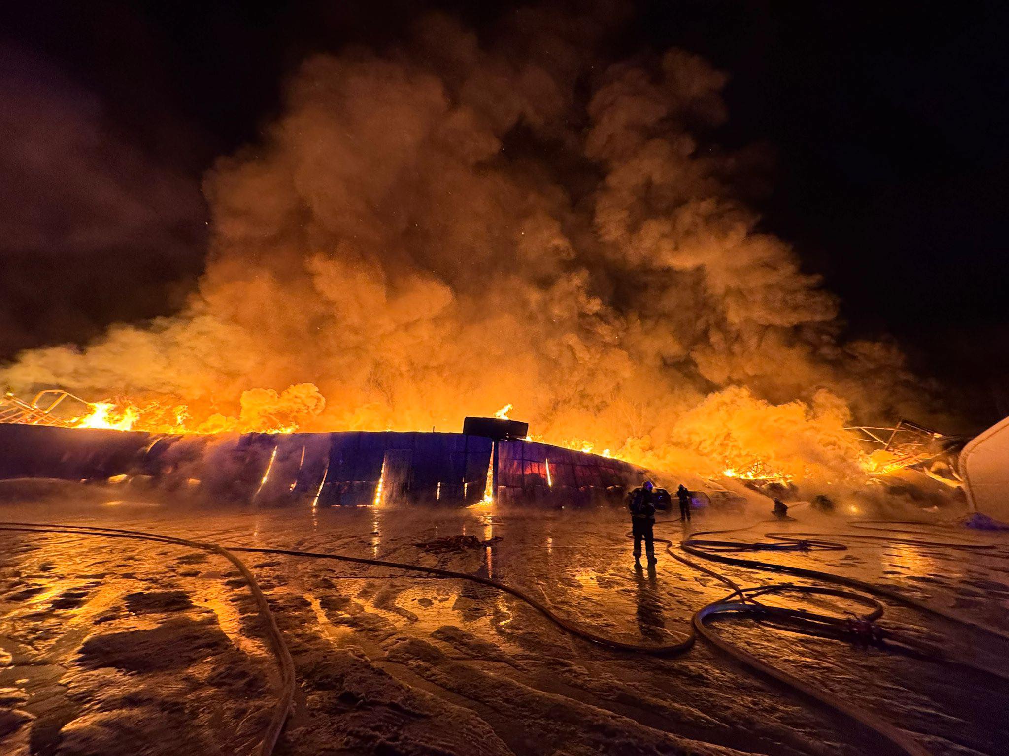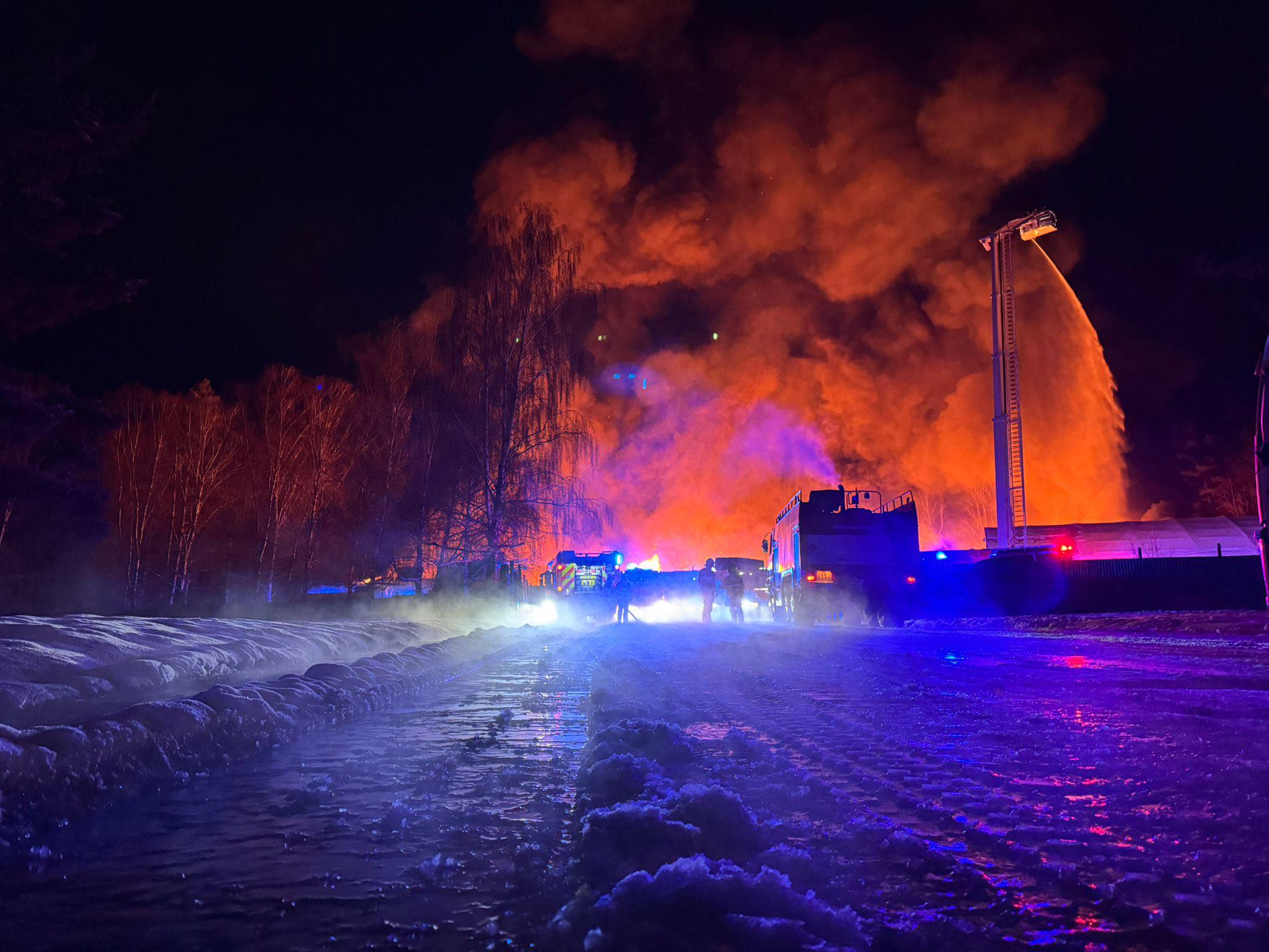 AKTUÁLNĚ: Ranní požár skladové haly si vyžádal třetí stupeň poplachu