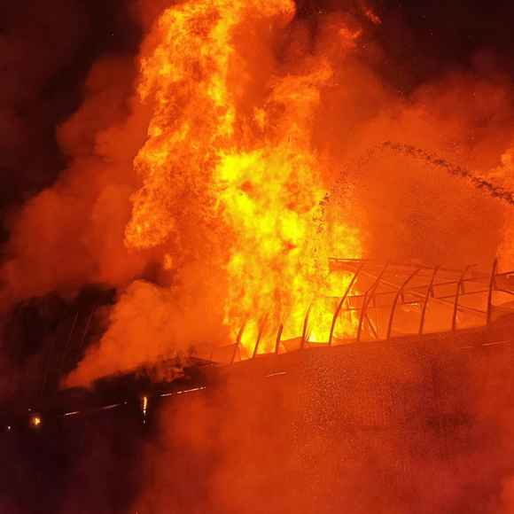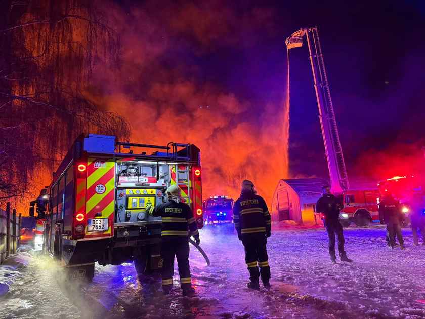 "Kolem půl desáté byl snížen stupeň požárního poplachu ze 3. na 2. Podařilo se uchránit blízko stojící budovu a zabránit přenosu na přilehlý les. Střecha se propadla dovnitř a nyní se dál pracuje na likvidaci," uvedl mluvčí hasičů.