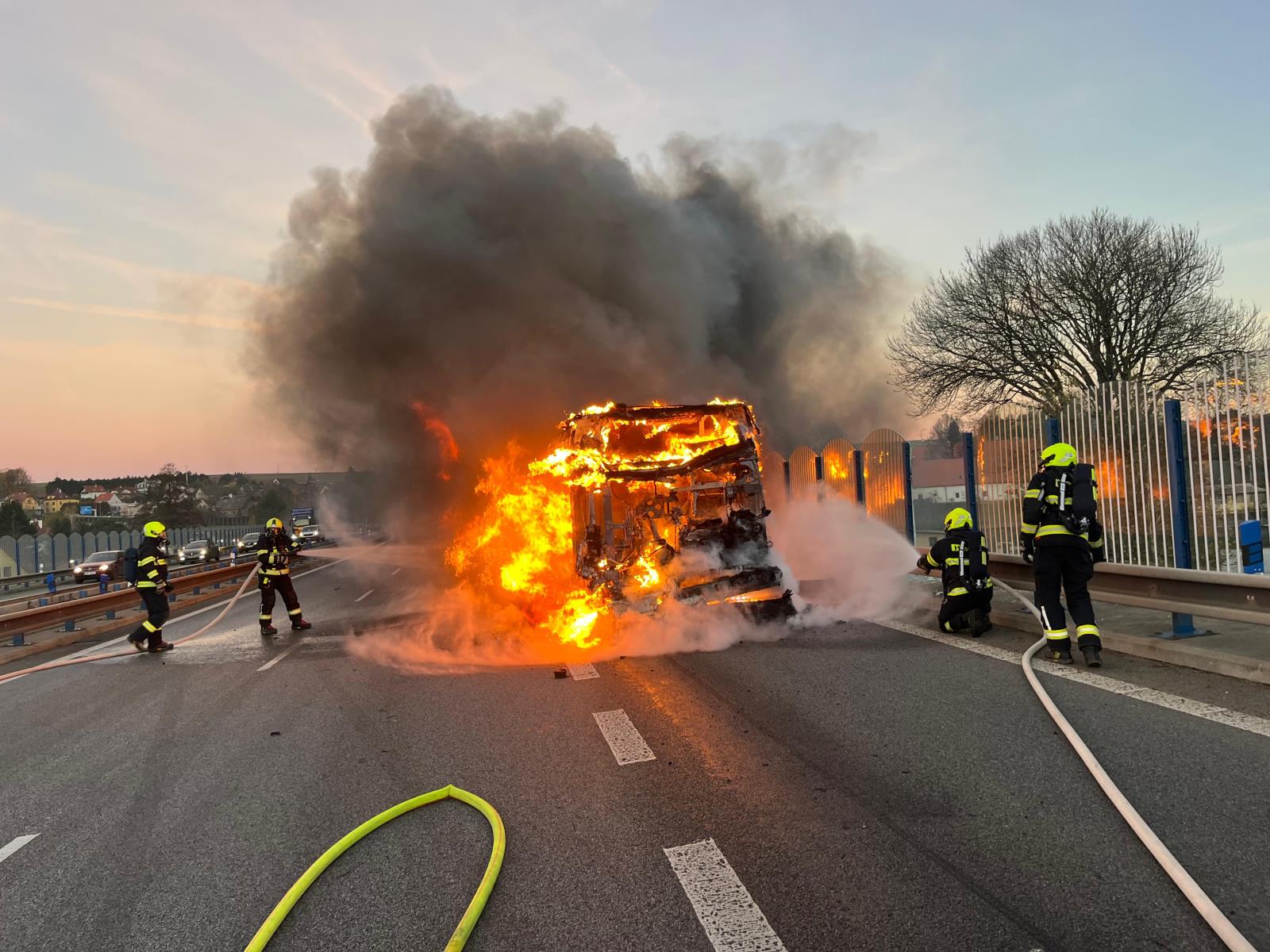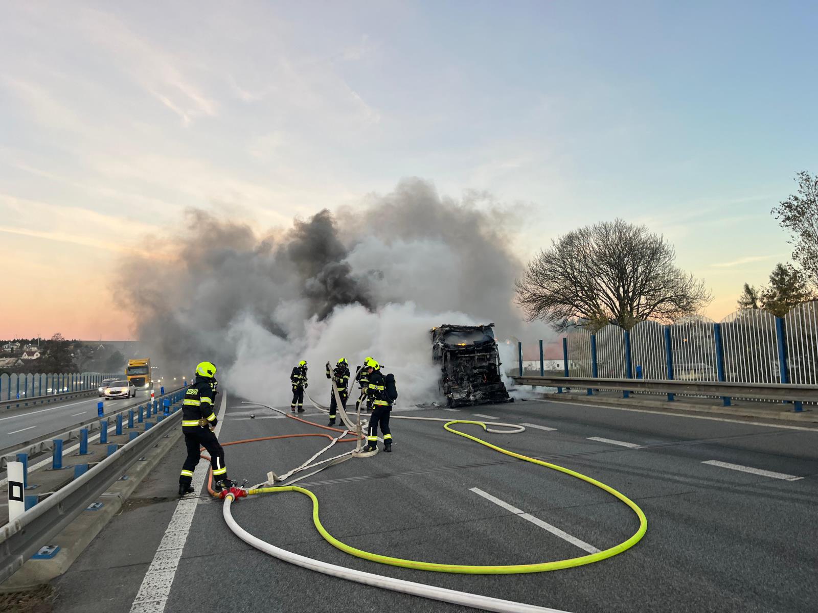 AKTUÁLNĚ: Požár autobusu zastavil dopravu na silnici I. třídy