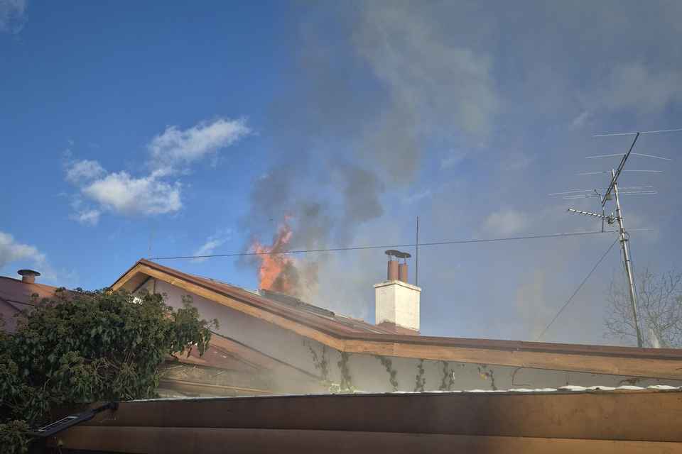 Požár se šířil i na sousední objekt, na místě zasahuje také letecká záchranná služba.