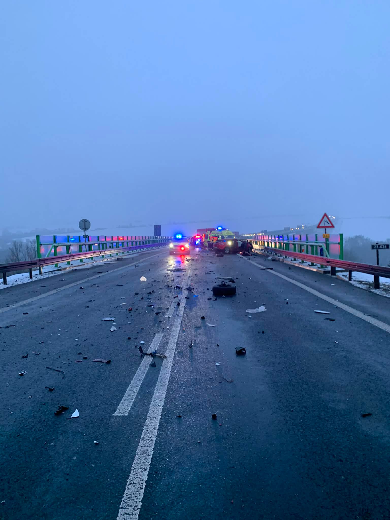 Oznámení o nehodě přijalo operační středisko na linku 112 náhodným svědkem, který slyšel "rány a bouchání", v 7:03 hodin. Na místo okamžitě vyrazily hlídky Policie ČR, zdravotnická záchranná služba a dvě profesionální jednotky hasičů. Podle prvotních informací došlo k čelnímu střetu vozidel.