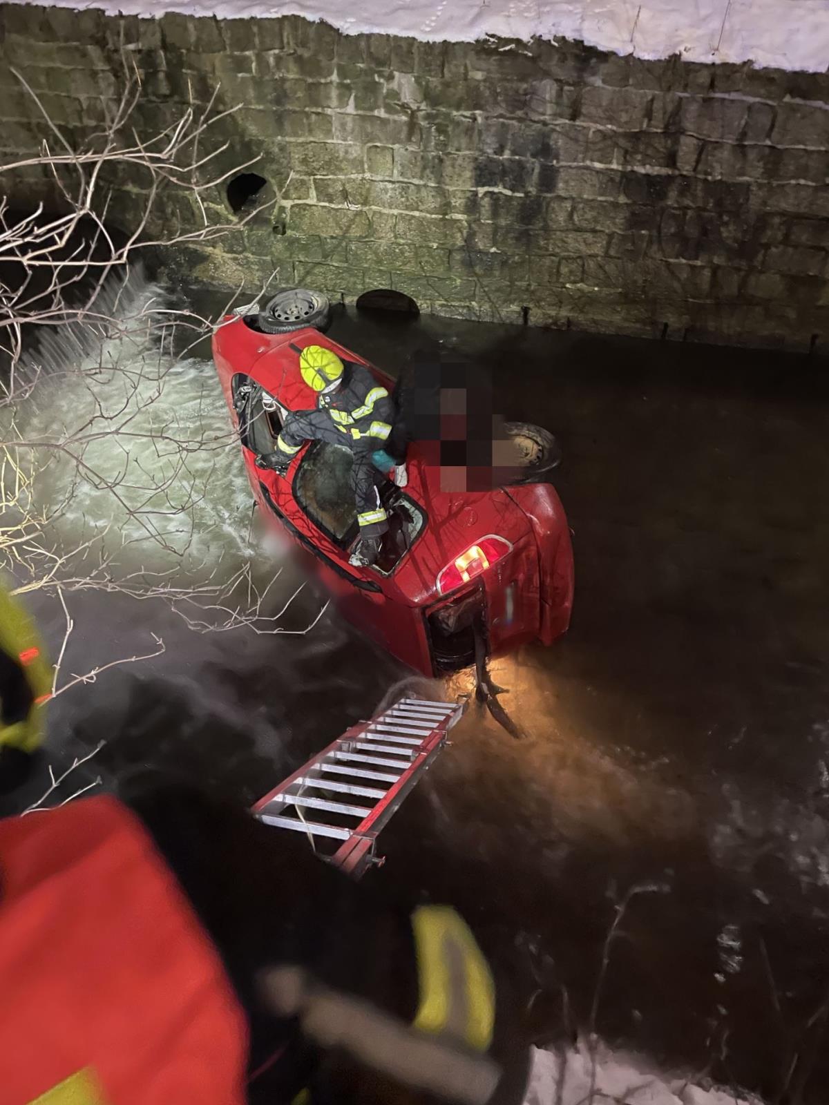 Liberečtí profesionální hasiči vyjížděli v pondělí 2. února krátce před půlnocí k dopravní nehodě osobního automobilu, který v Liberci skončil v korytě řeky Lužická Nisa. Řidič vozidla utrpěl zranění a bez pomoci zasahujících by se z ledové vody nedostal.