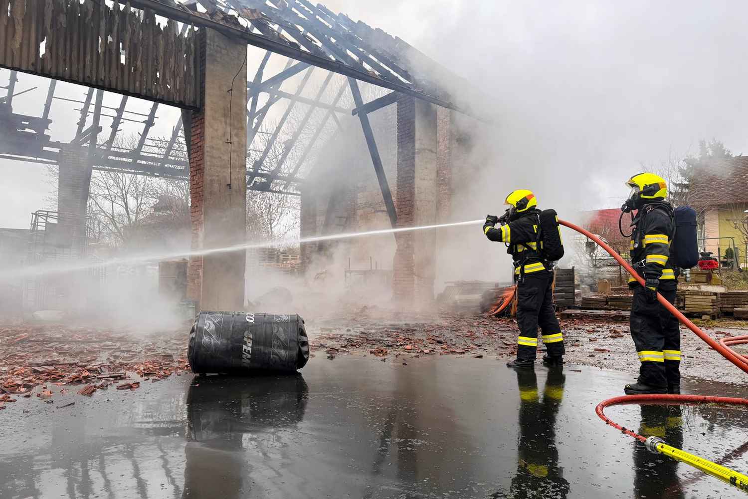 "Dne 10. 2. 2026 v 07:51 hod. jsme přijali oznámení o požáru v obci Dolní Roveň. Na místo vyjelo celkem 14 profesionálních a dobrovolných jednotek.