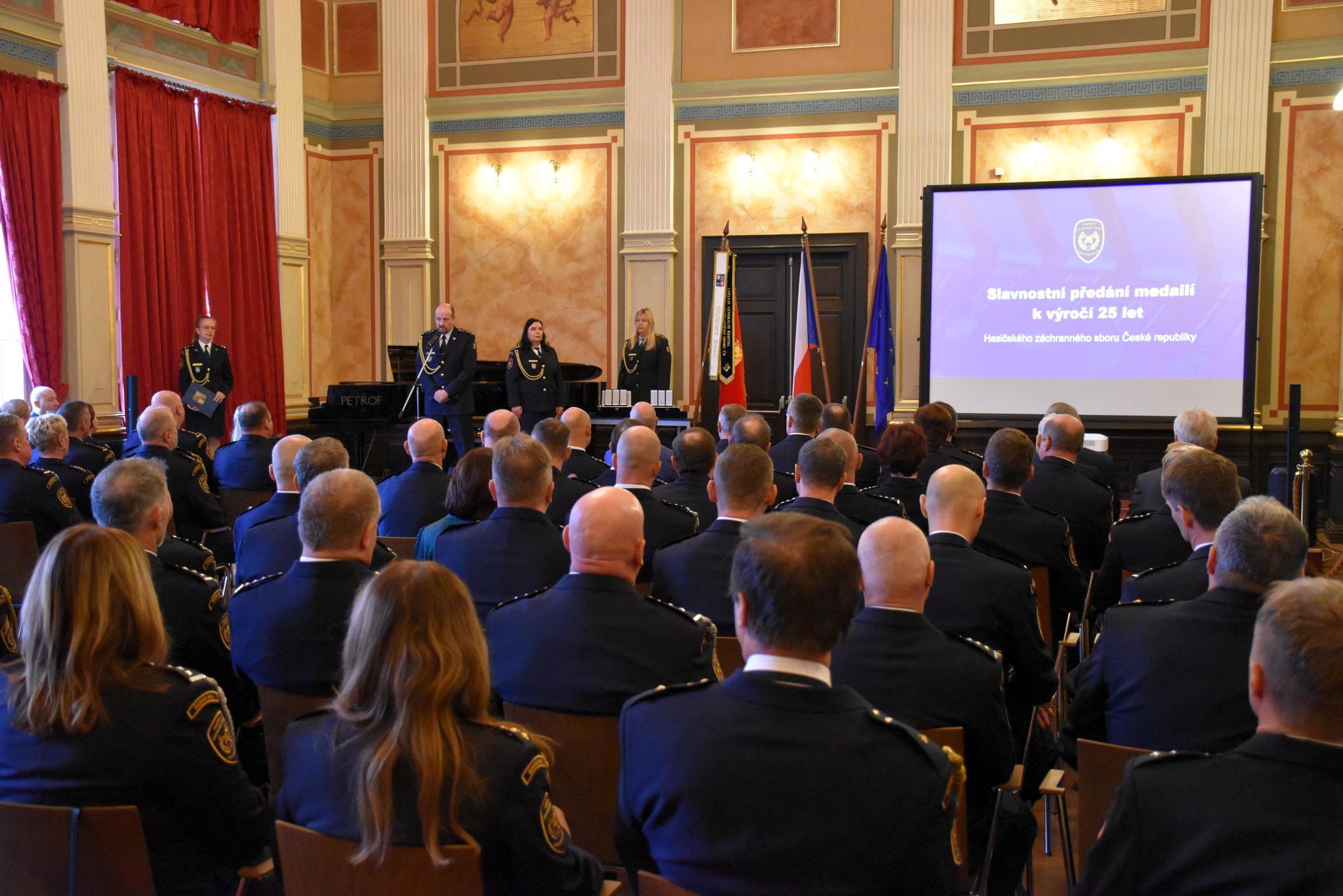Slavnostní setkání připomnělo sjednocení požární ochrany v roce 2001 a ocenilo 87 příslušníků a zaměstnanců, kteří slouží nepřetržitě po celou moderní historii HZS České republiky.