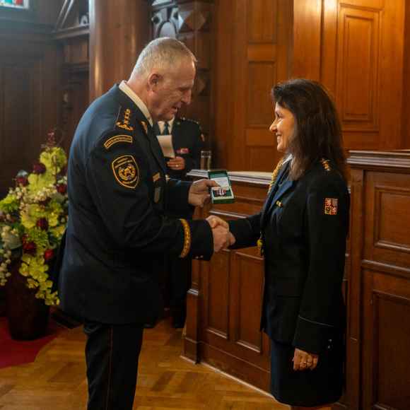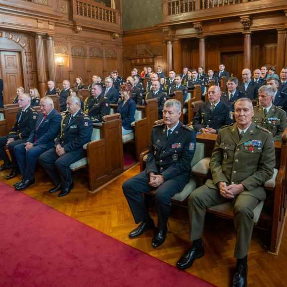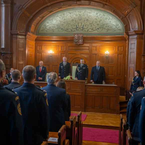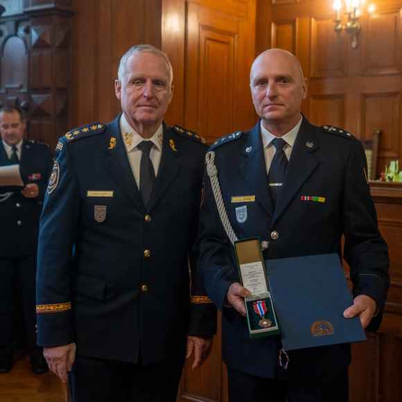 O něco později, krátce před polednem, se pozornost přesunula do reprezentačních prostor liberecké radnice. Právě zde proběhlo předávání medailí HZS ČR „Za věrnost“ II. a III. stupně a několika dalších ocenění, která vyzdvihují dlouholetou a oddanou službu příslušníků sboru.