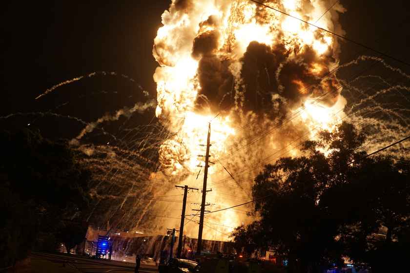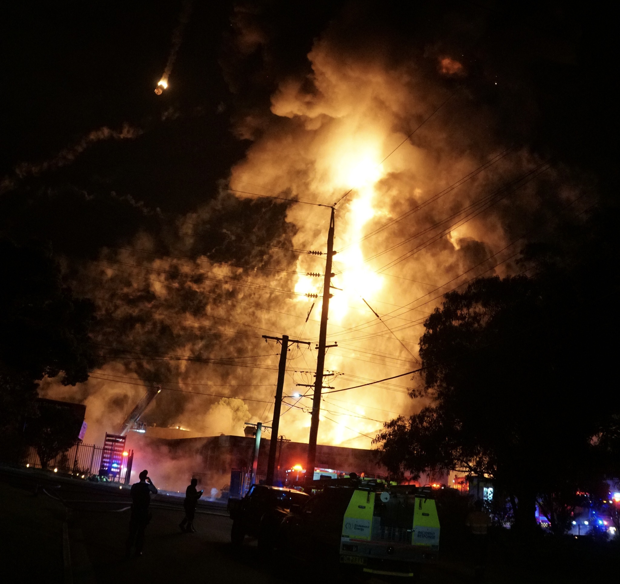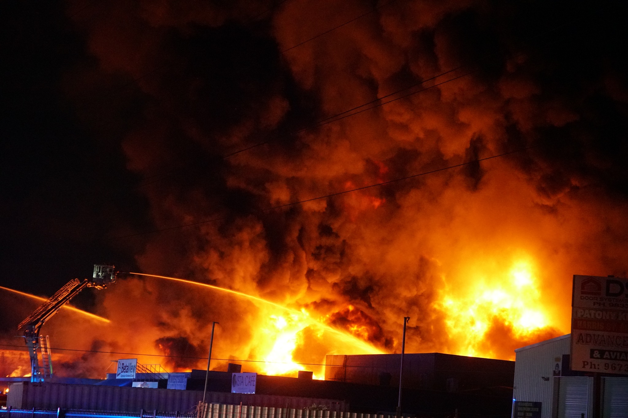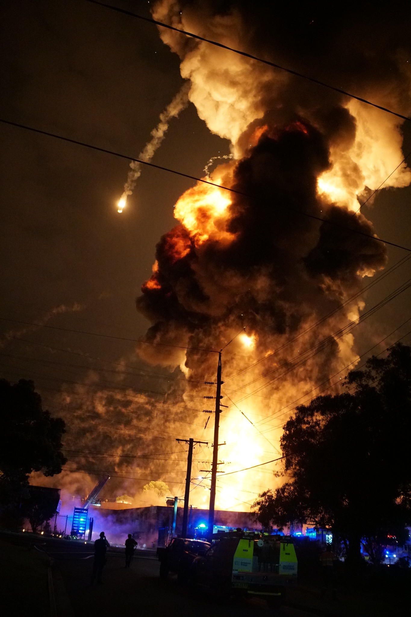 Obrovský požár, který v noci zachvátil recyklační a chemický areál v severní části St Marys na západě Sydney, zaměstnal stovky hasičů a během pár minut změnil tvář celého okolí. Oheň se rozhořel těsně před jedenáctou večer a během chvíle vystřelil k nebi ohnivou kouli, kterou bylo možné vidět na kilometry daleko. Výbuchy provázely plameny vysoké přes sto metrů.