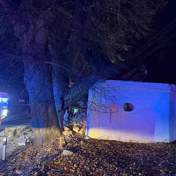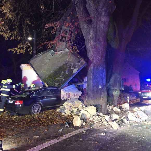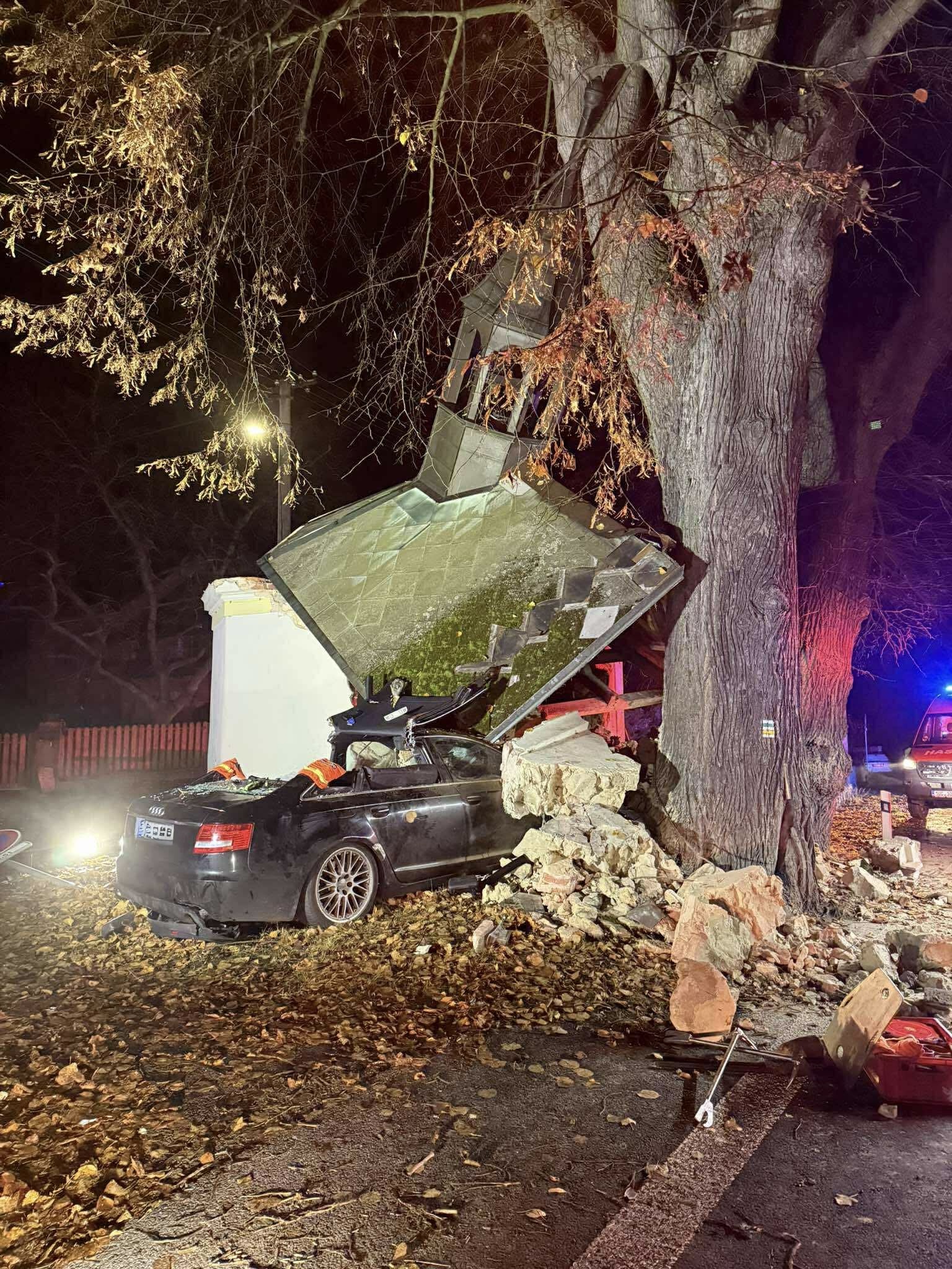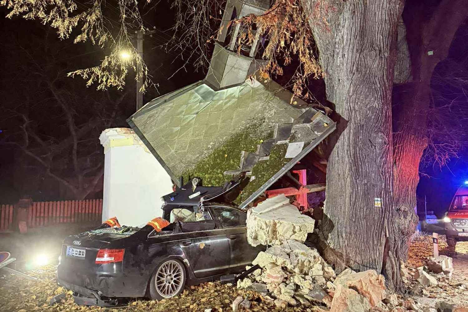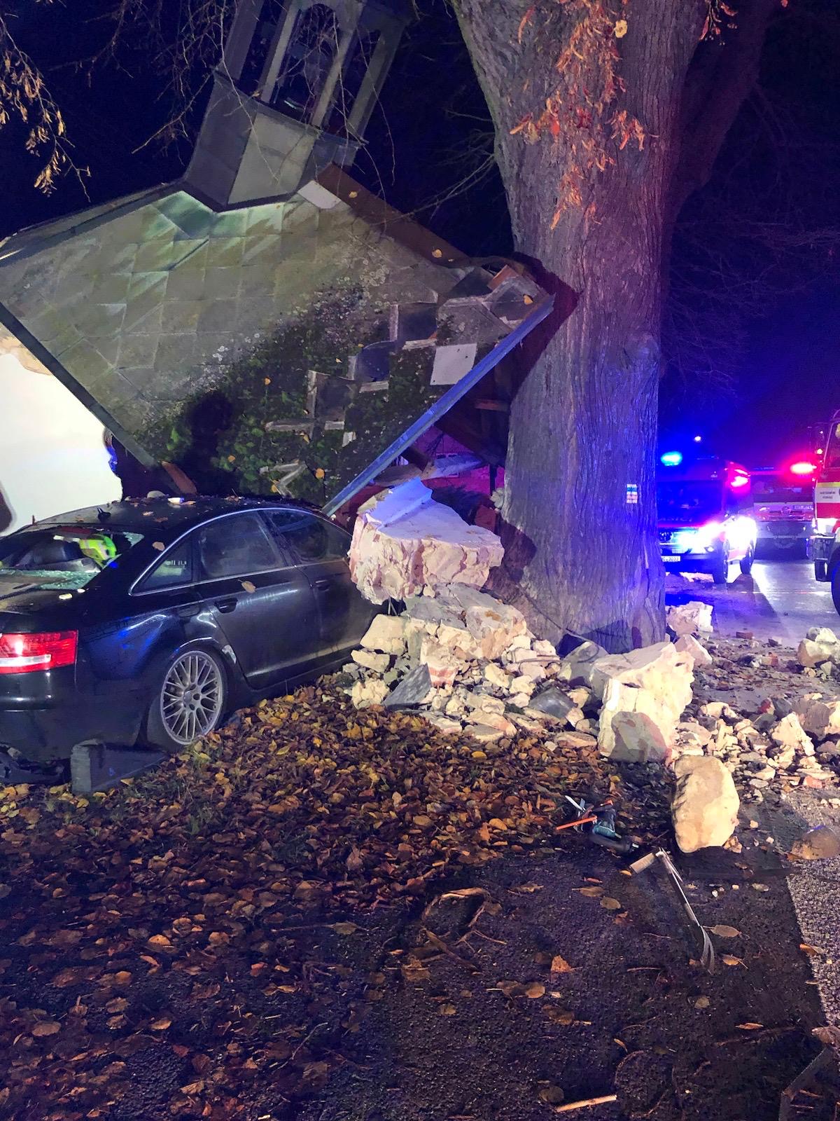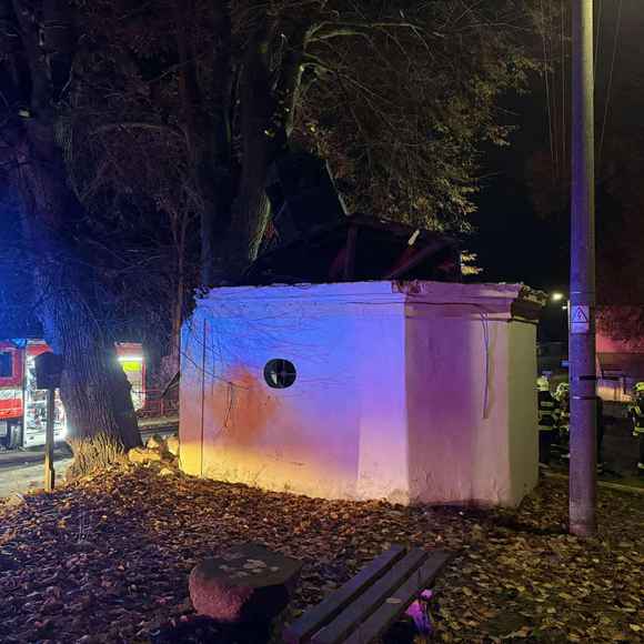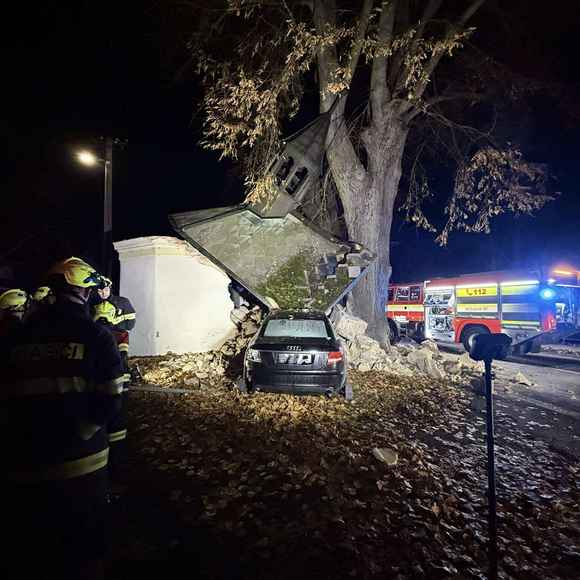 Krátce po půlnoci vyjížděli hasiči k dopravní nehodě v části obce Křižanov, kde osobní vůz narazil do místní kapličky. Náraz byl tak silný, že drobná stavba byla prakticky celá zničena.